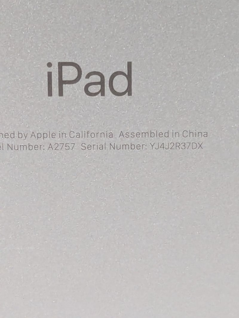 Apple iPad, Model: A2757, Serial# YJ4J2R37DX