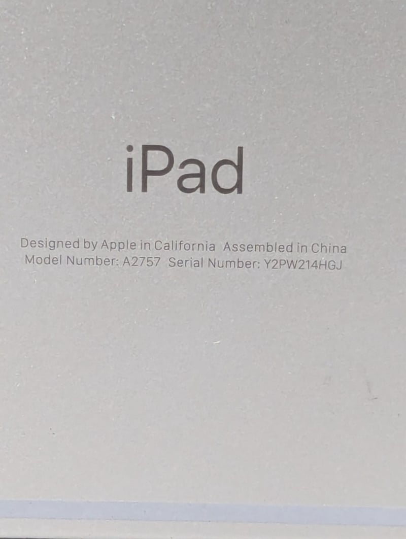Apple iPad, Model: A2757, Serial# Y2PW214HGJ Note: no charger supplied