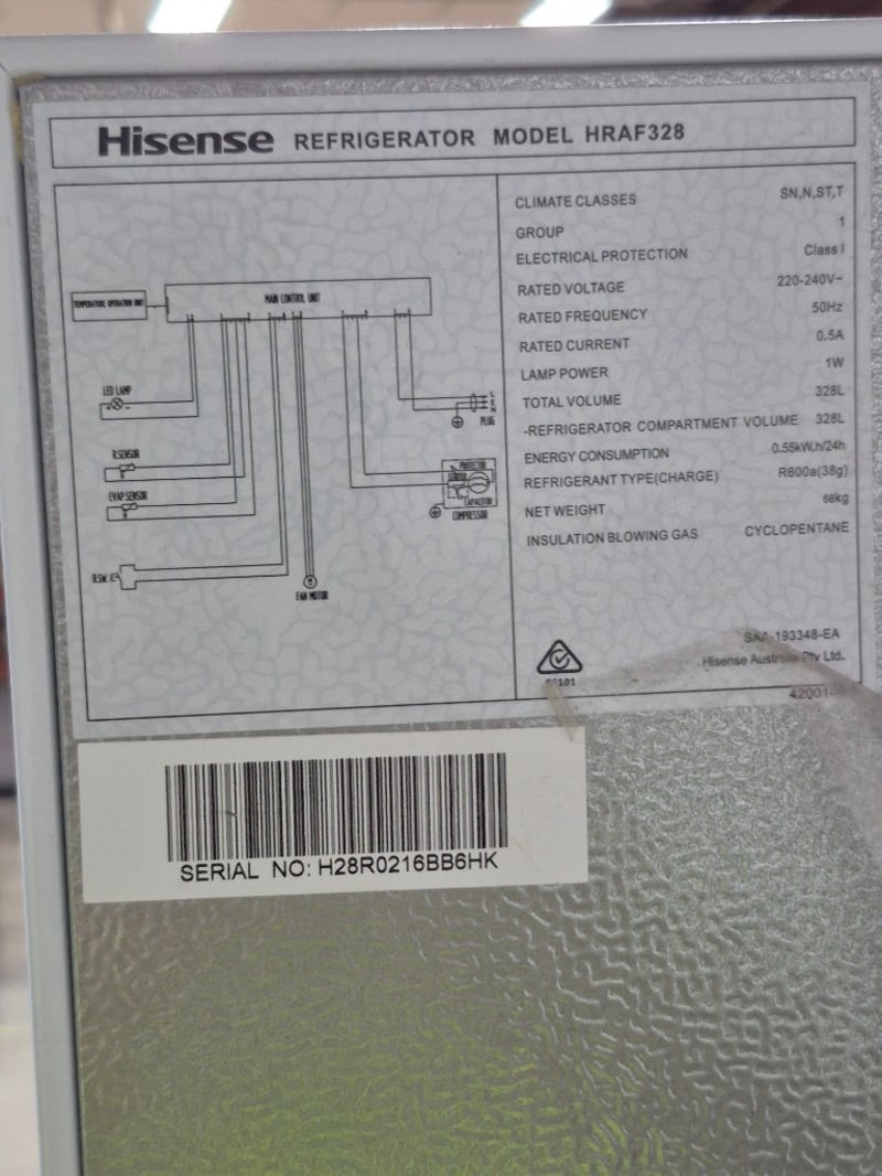 Refrigerator, Hisense 328L Upright, White, Model: HRAF328