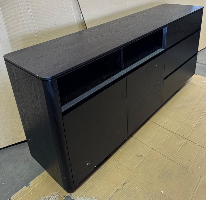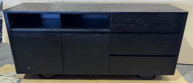 Buffet, oak vaneer buffet table RRP: $2390Dimensions: 185x49x81, 36x36x26Inspection recommended