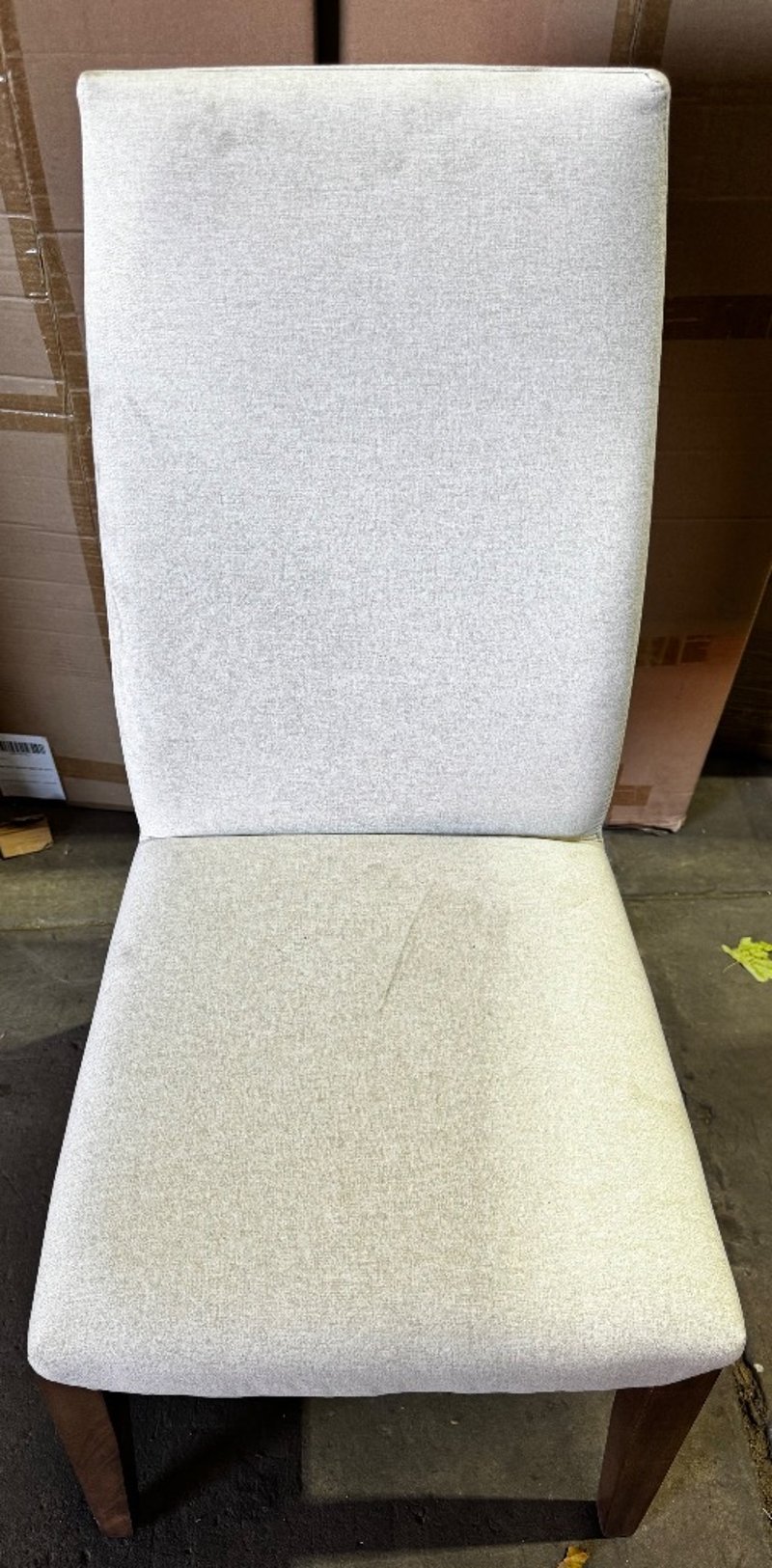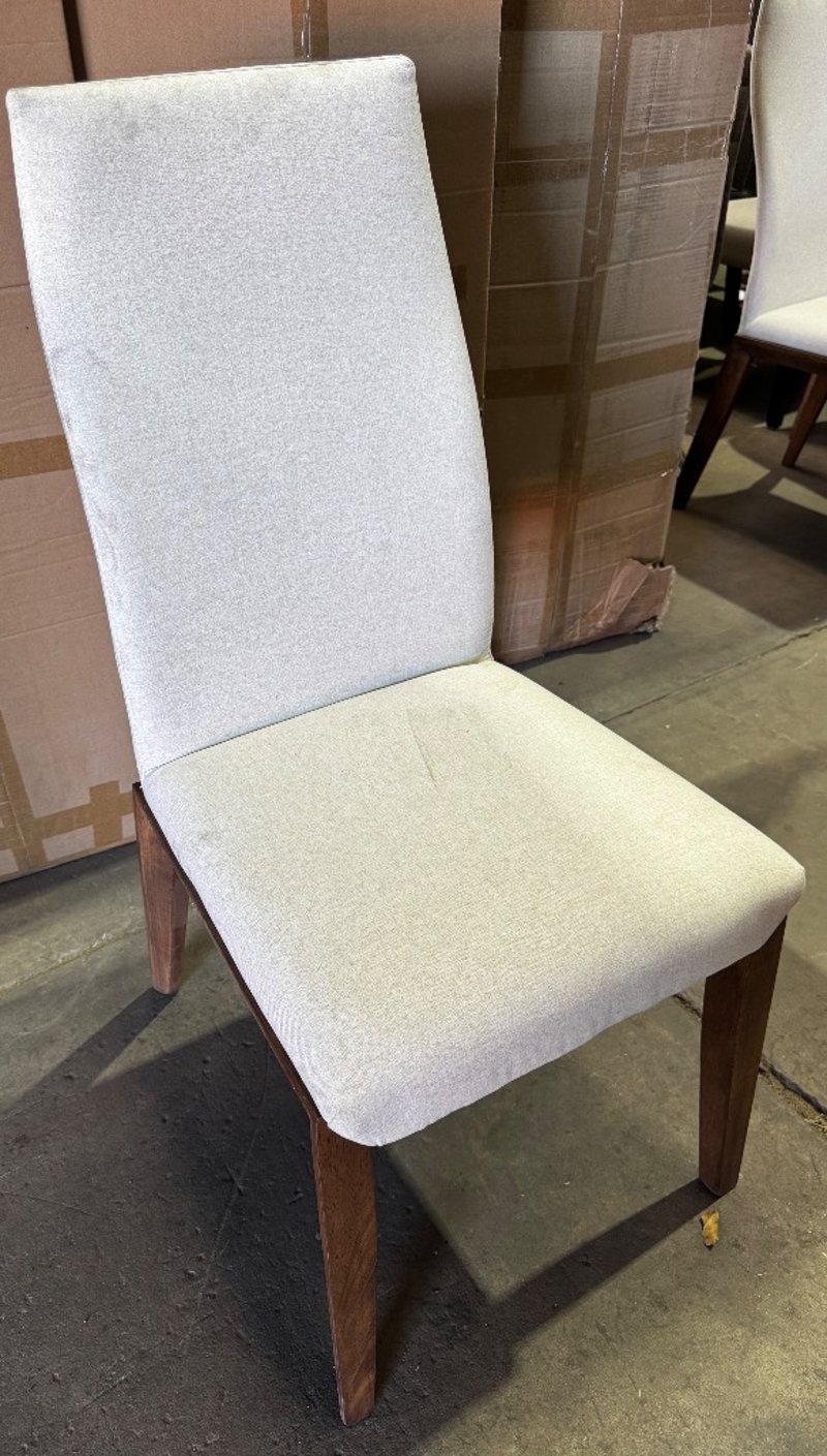 Chairs, fabric dining chairs x2, sold as lotRRP: $150Dimensions: 93cm H x 39.5cm W x 48cm D