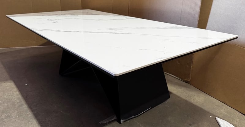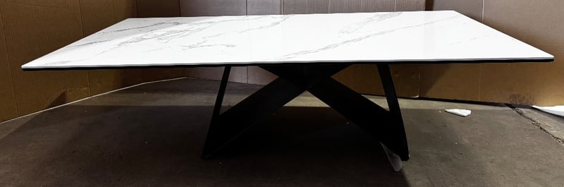 Table, marble style top coffee table RRP: $1890 Dimensions: 140x70x 40 Note: Damage Evident, Hardware not included