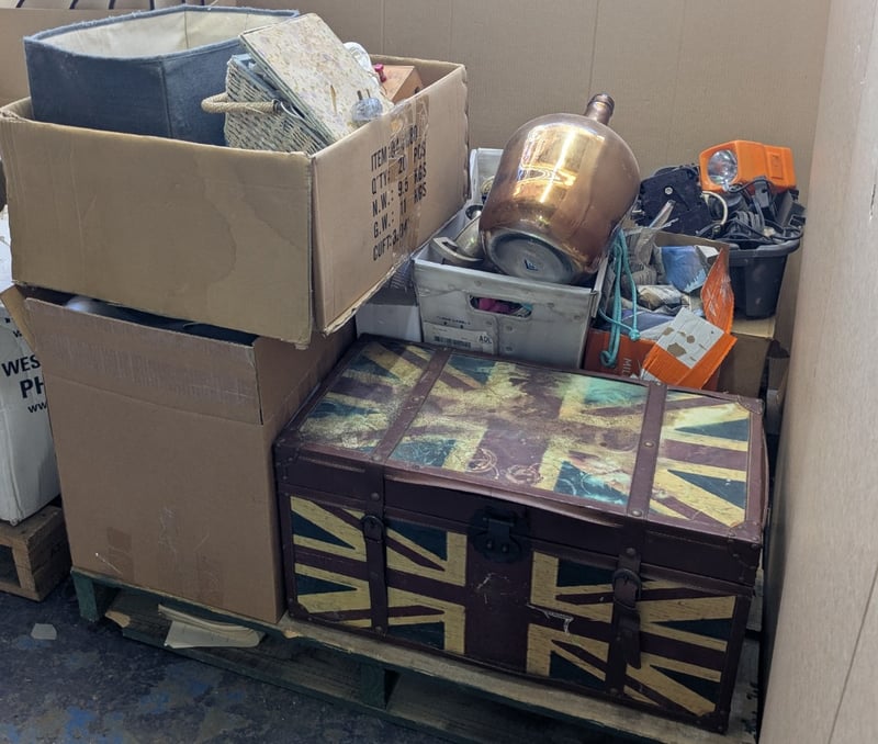 Homewares, Assorted Homewares Including Union Jack Trunk, Glassware, and more Sold as lot