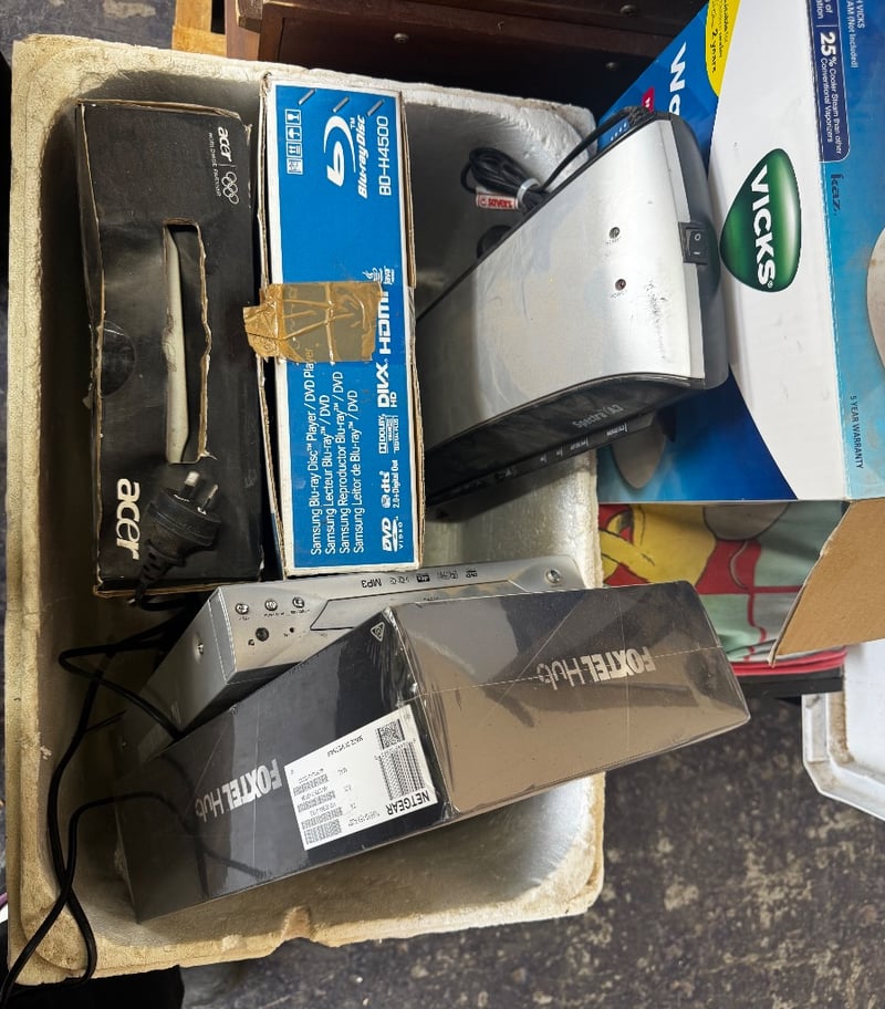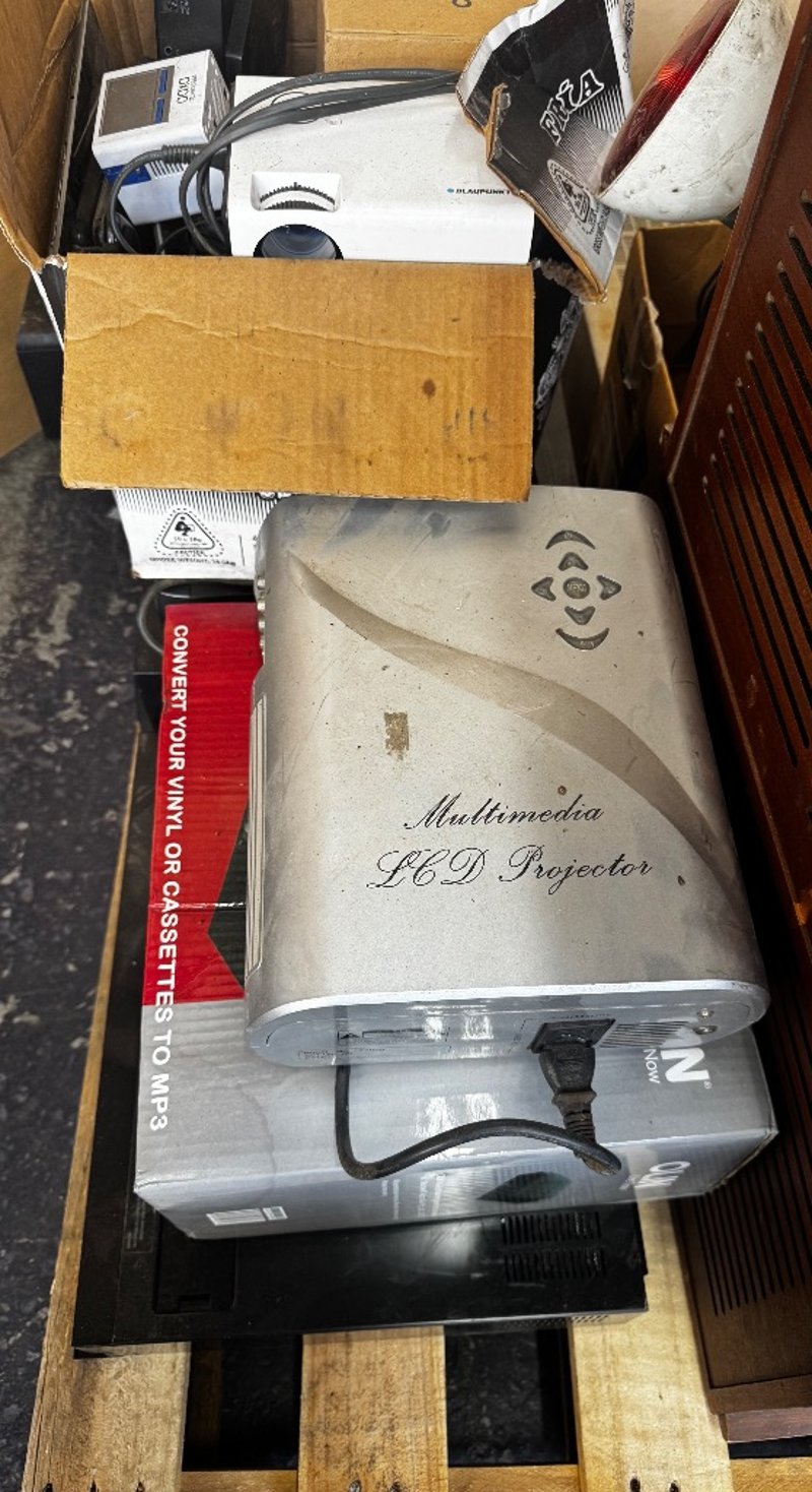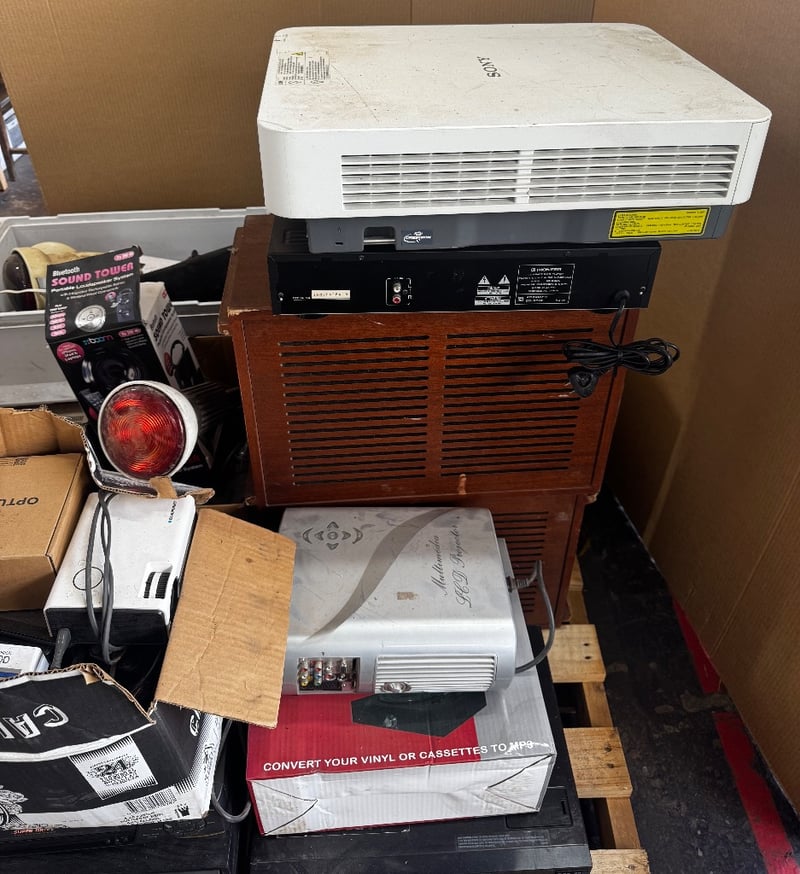 Electronics, assorted electronics including, Sony projector, blu-ray player, Foxtel hub and moreNOTE: conditions unknown, inspection recommended Sold as lot