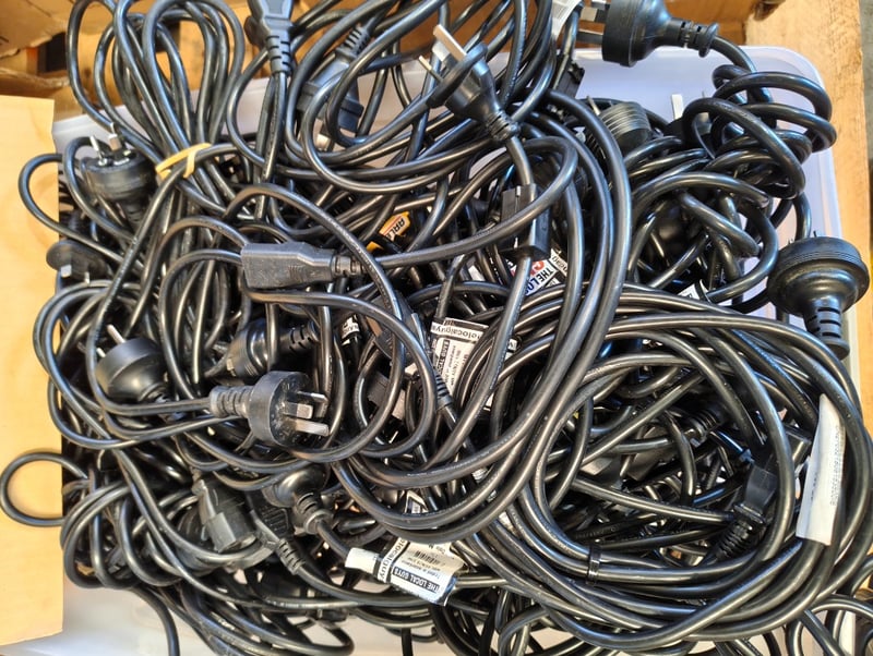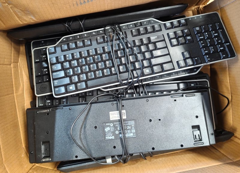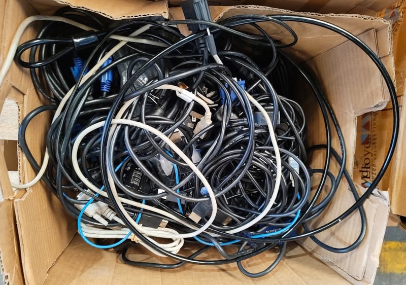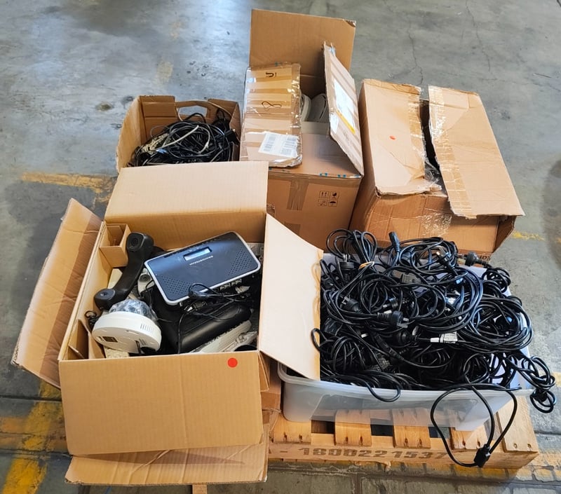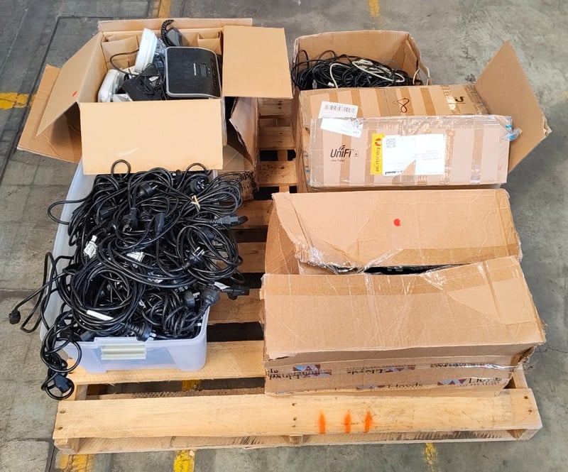 Assorted lot of items Including power cables, keyboards, Xirrus wi-fi access points, and more Note: Items in unknown working condition Sold as lot Inspection Recommended