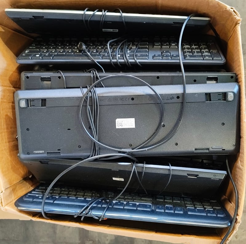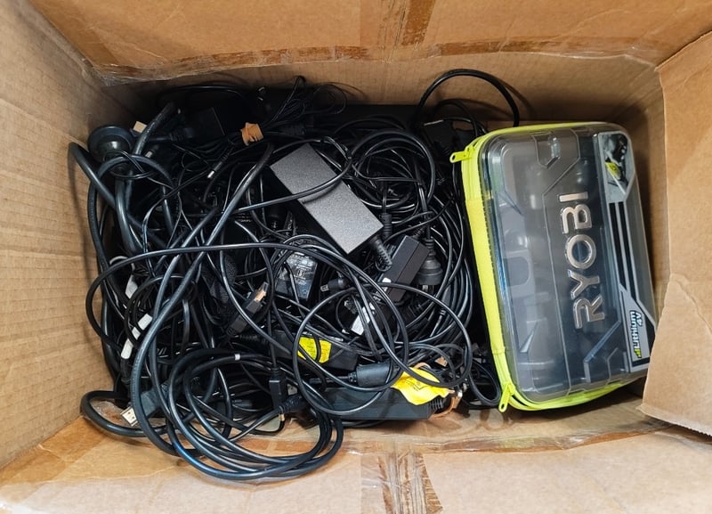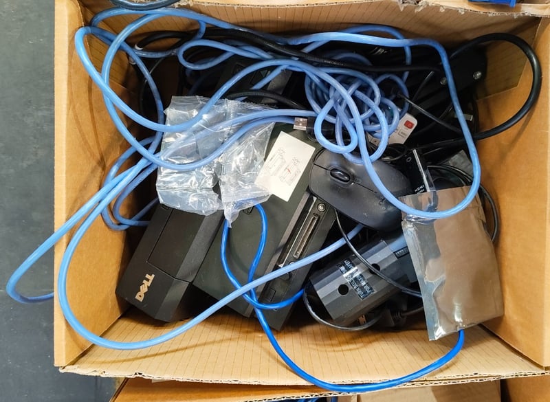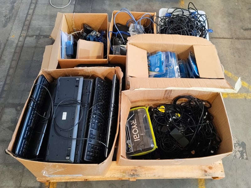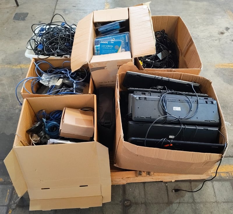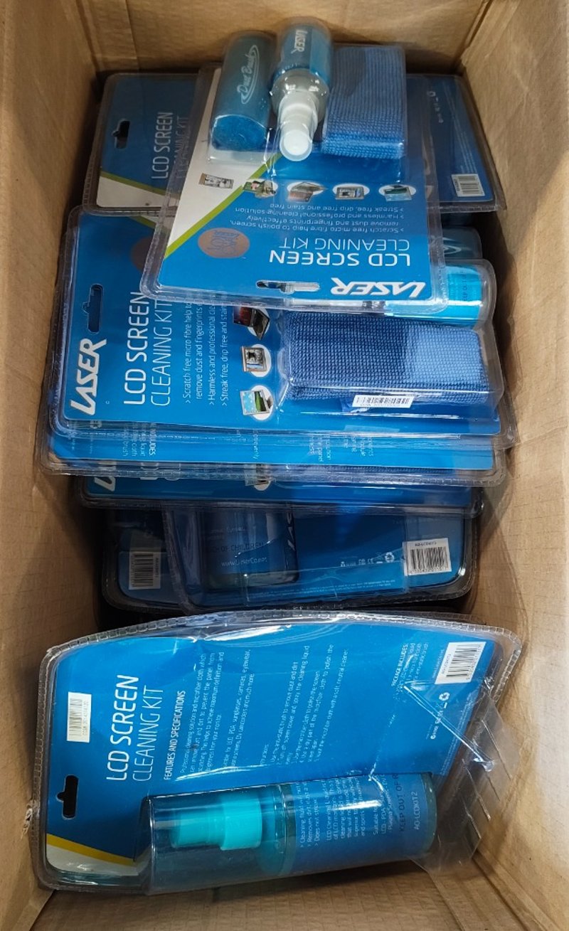 Assorted lot of items Including power cables, keyboards, Laser brand LCD Screen cleaning kits, and more Note: Items in unknown working condition Sold as lot Inspection Recommended.