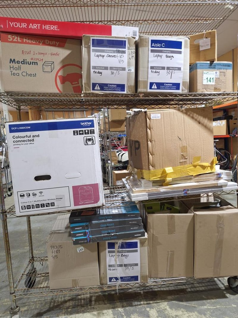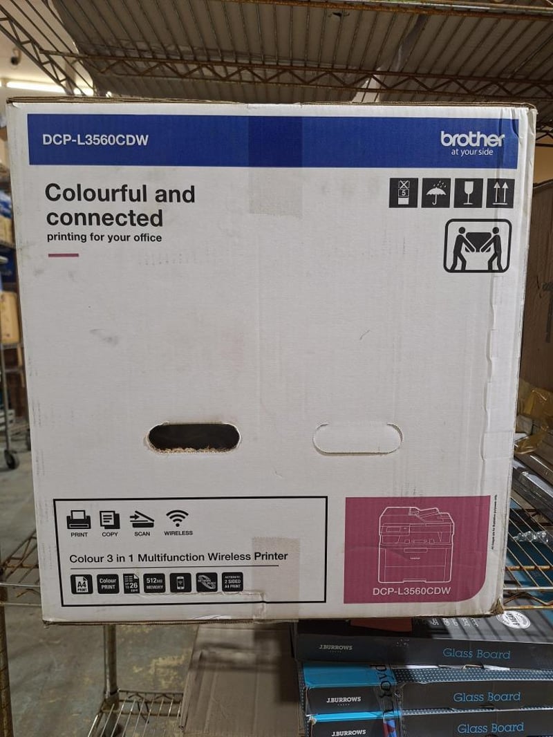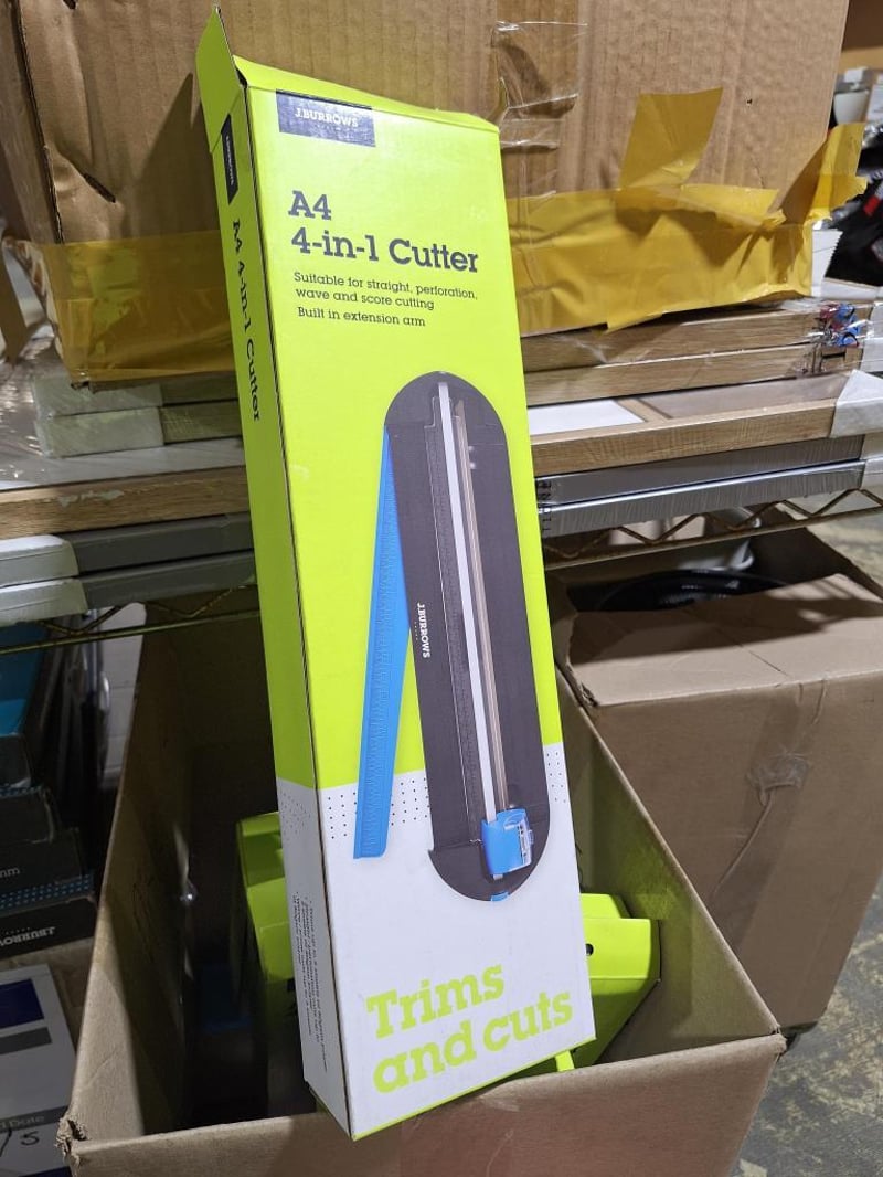 Assorted Office Supplies LotIncludes Wireless Printer, Galaxy Tab A8, A4 Paper Cutter, Easel, Laptop Bags, Glass Board & MorePLEASE NOTE: Items Are Untested RACK NOT INCLUDEDSOLD AS LOT