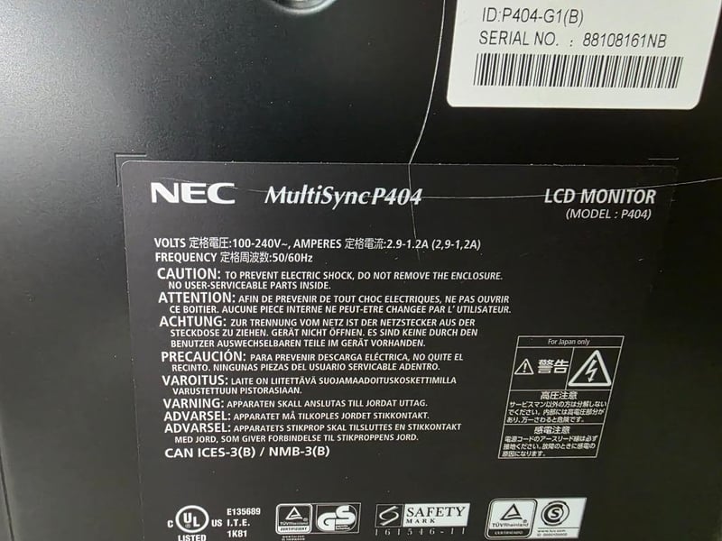Nec Multisync LCD MONITOR 40”Model: P404No power cordApprox Dimensions: 53H x 90W x 7D
