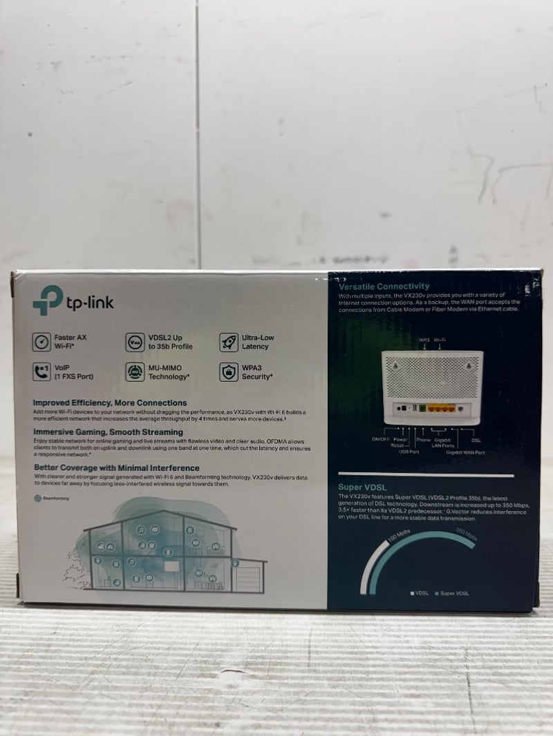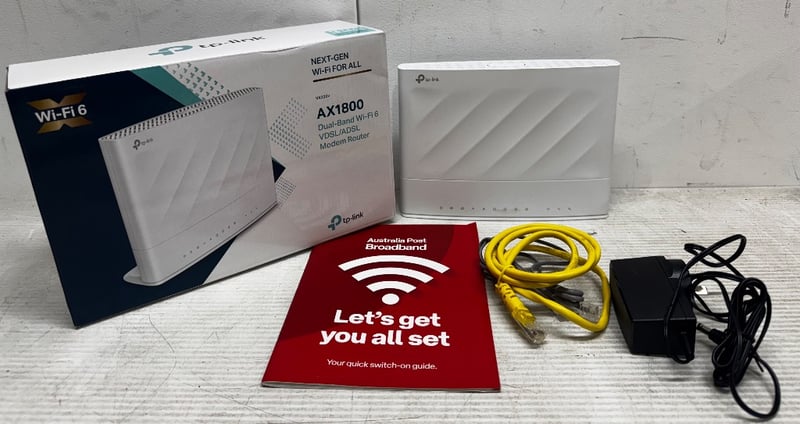 Broadband modem, Australia Post, TP link AX1800 dual band wifi 6 nvn compatible broadband modem, model: TP-LinkVX230v