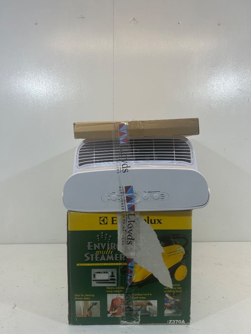 Assorted items include, multi steamer, air purifier, portable dehumidifier, brands include, Electrolux, mountain breeze