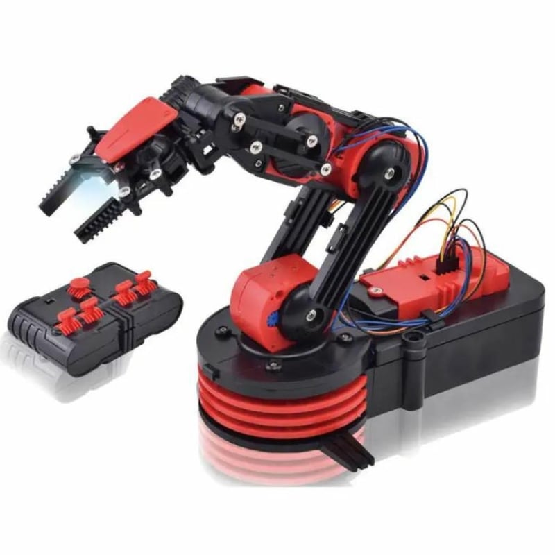 Wireless RC Robotic Arm Engineering Kit Remote Control Robot Building Toys Science Kit for Kids Multiple Function and Rotation Modes LED Light Multiple Motor Control Arms Quality ABS Plastics APPROX 24cm x 26cm (batteries not included)(NEW IN BOX) RED