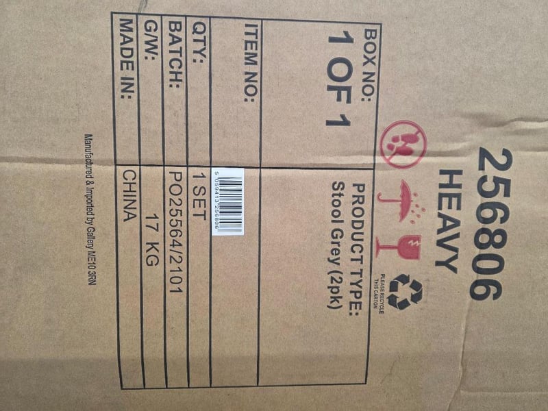 RRP $2998 Sidcup Stool Grey 520x530x800mm x2 (2pk) total qty x4 chairs 256806
