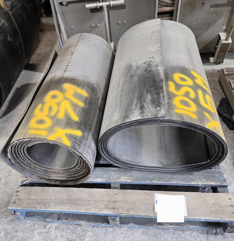 x 2 Conveyor Belt Insert black rubber RollSize: 1050 mmWidth: 7 mWidth: 5mWeight: 420 KGPallet Size: 120 cm x 120 cmSold as a lotLocation: Geelong, VIC Contact: Mark David on 0437 318 344 or [email protected]