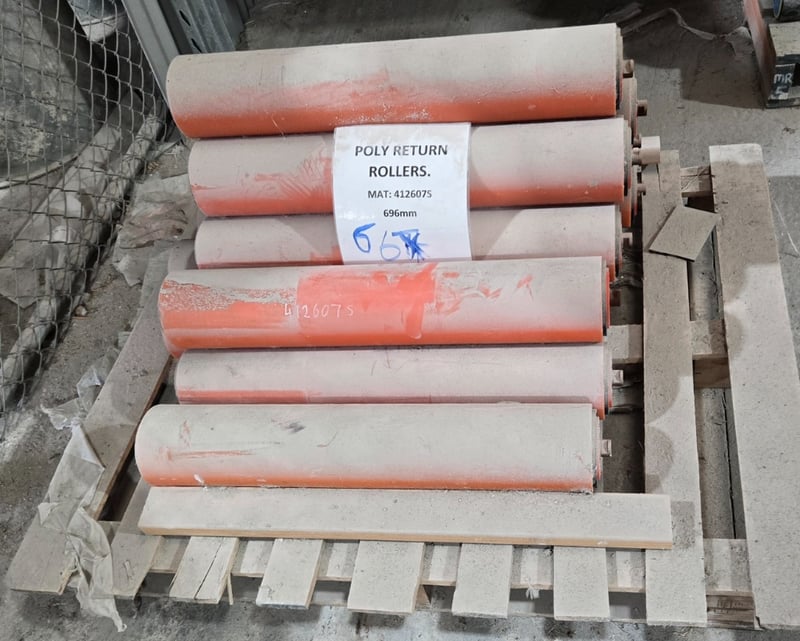 poly Conveyor Belt Return RollersType: polySize: 696 mmWeight: 100 KGQTY: 10Sold as a lotLocation: Geelong, VIC Contact: Mark David on 0437 318 344 or [email protected]