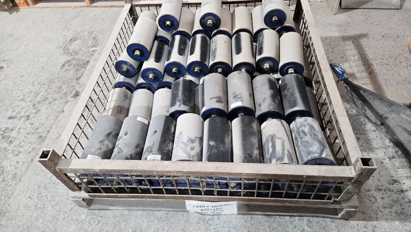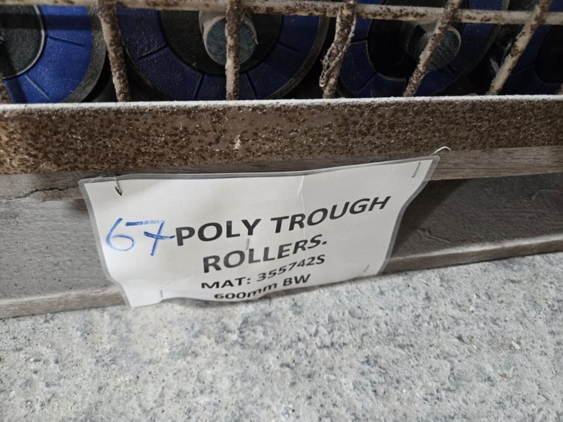 poly Conveyor Belt RollersType: polySize: 600 mmWeight: 400 KGQTY: 68Sold as a lotLocation: Geelong, VIC Contact: Mark David on 0437 318 344 or [email protected]