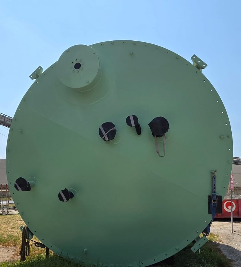 Acid Surge Tank Acid Rated Tank Volume: 56.8 M3 Tank Size: 4m x 6.6m Frame size: 2.7m x 4.5m Lifting Available On-site by Appointment Only at no cost. Weight Approx 40 Tonne. Unused. Location: Geelong, VIC Contact: Mark David on 0437 318 344 or [email protected]