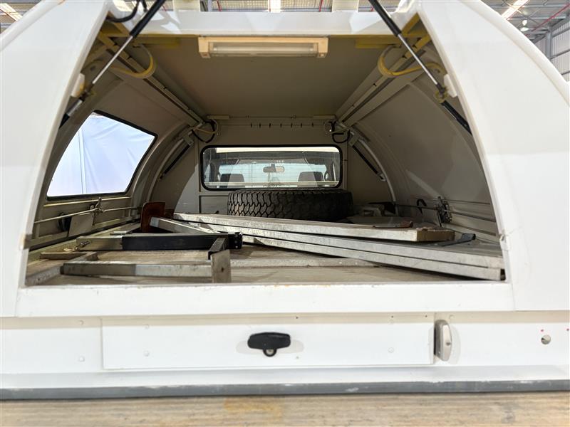 Vendor Advises the Following: 150L fuel tank, winch, wind-up canopy, tray sides, two spare wheels, second battery compartment, battery isolator (wired but not in use), UHF radio, spare parts/filters/belts, front bash plate, roof-mounted lights, and reverse beacon.
