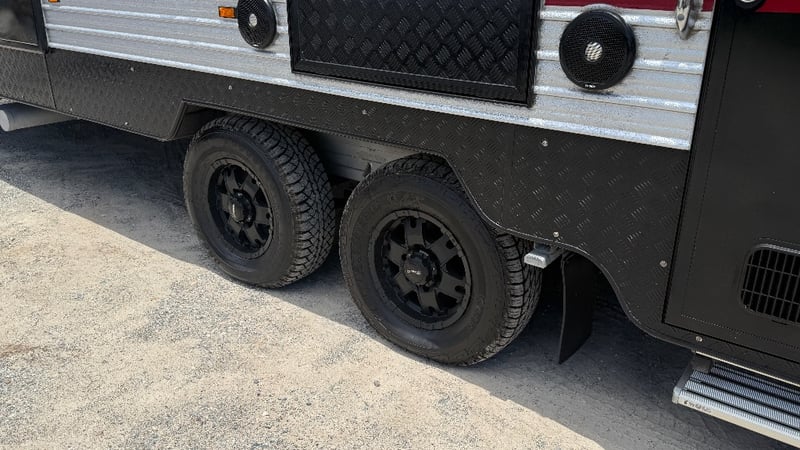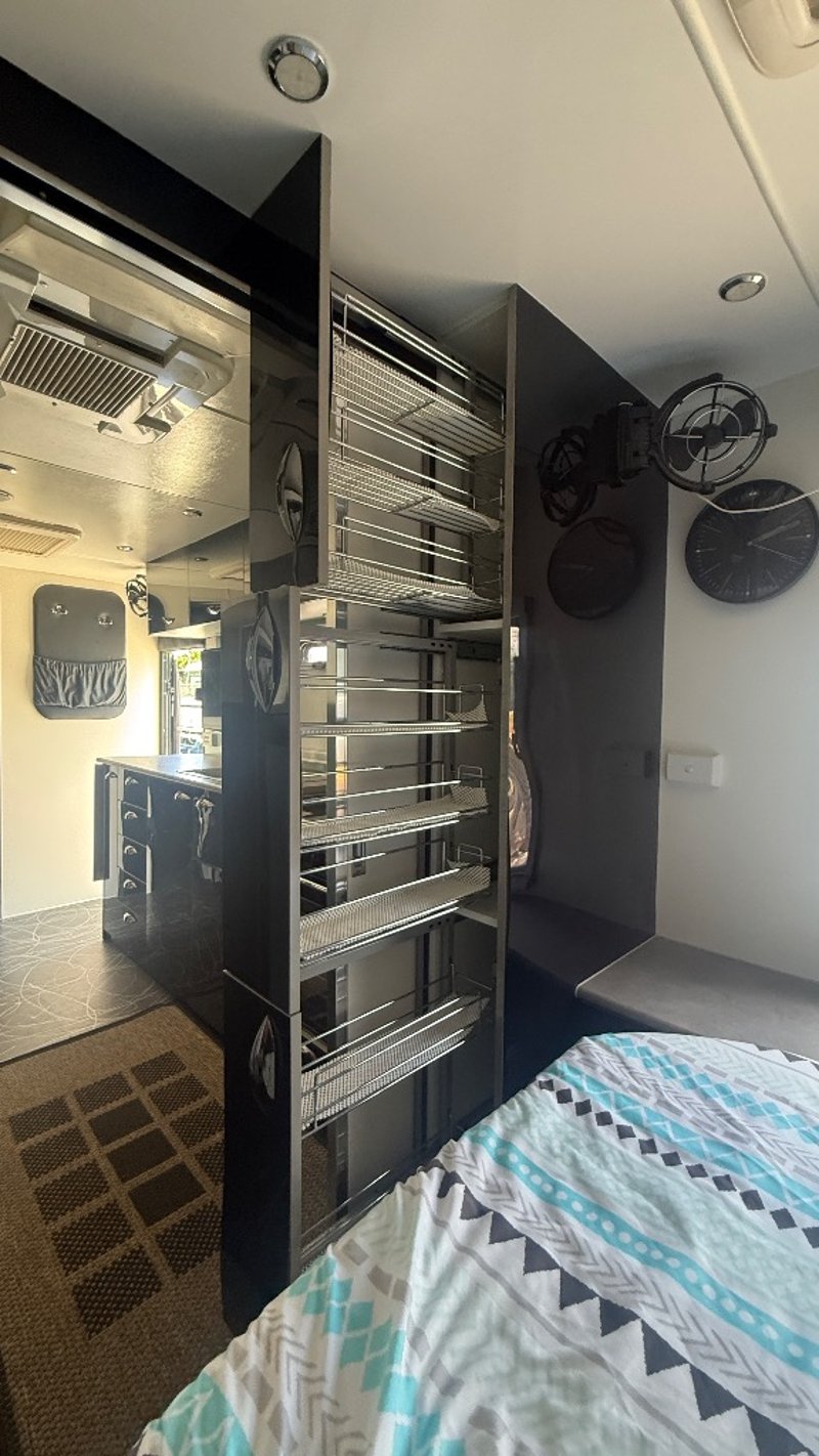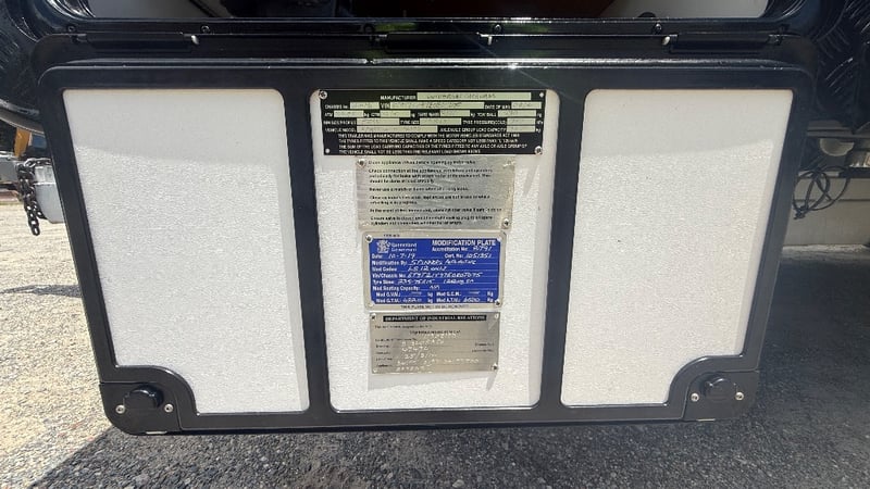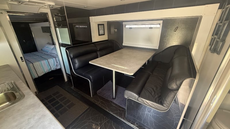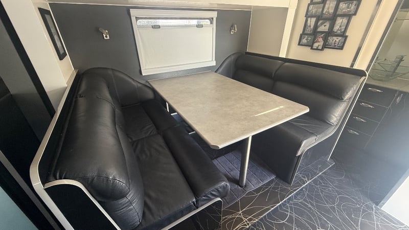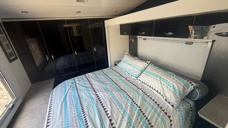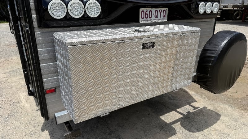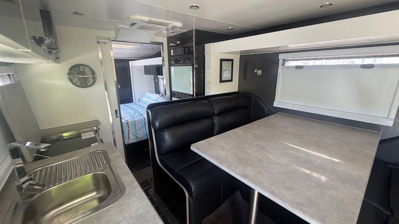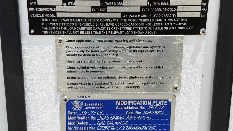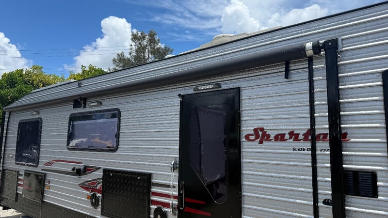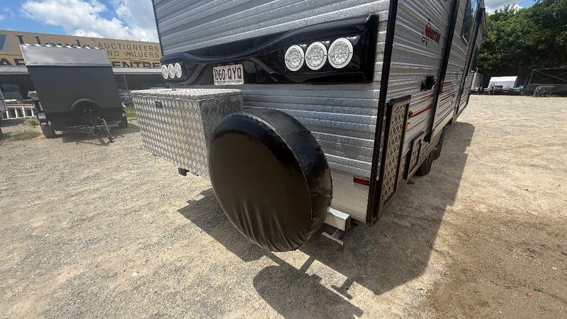 2014 Universal Caravans Spartan – 25’7” Double Slide Touring CaravanKey Specifications • Overall Length: 25’7” • Layout: Double slide-out • Axles: Tandem axle • ATM: 4,500 kg • GTM: 4,220 kg • Tyres: 235/75R15 (1250 kg rating each) • Gas: Certified LPG system (compliance plates fitted)Power & Off-Grid Setup • 2 × Solar panels • 2 × Batteries • Large inverter • Runs everything except microwave and air conditioner • Diesel heating installedExterior Features • Full front checker-plate stone guard • Roll-out awning • Double slide-outs • Large front toolbox • Dual gas bottles on drawbar • Multiple external storage lockers • Heavy-duty chassis and drawbarInterior & Living • Front café dinette with leather seating • Converts to bed • Rear island bed • Full-height mirrored wardrobes • Extensive overhead and lower storage throughout • Modern interior finish with neutral tones • LED lighting • Air conditioningKitchen & Appliances • 3-way fridge • Microwave • Oven & cooktop • Stainless sink with drainer • Ample bench space and cabinetryEntertainment & Comfort • 3 × 32” televisions • Satellite TV dish • Stereo system with DVD & CD player (all-in-one)Bathroom • Toilet • Vanity with glass bowl sink • Mirrored storage cabinets • Shelving and storageExtras • 3 kg washing machine • Diesel heating system • Fully equipped for extended touringVIN: 6T9T21V97E0E0J075#MMR