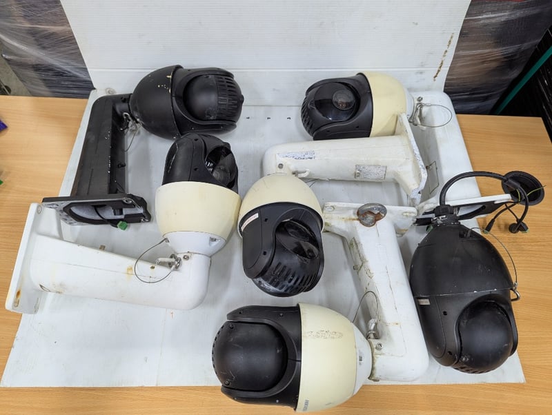 Assorted hikvision security cameras some with mounting arms