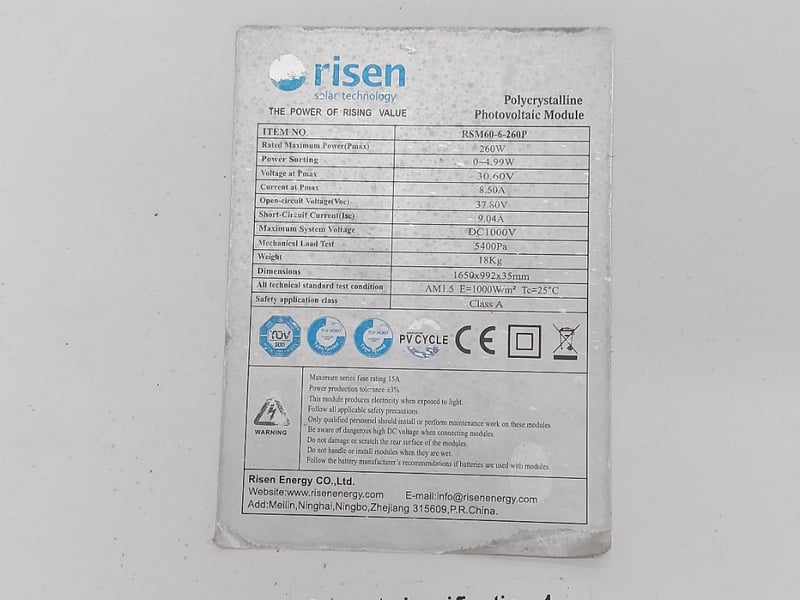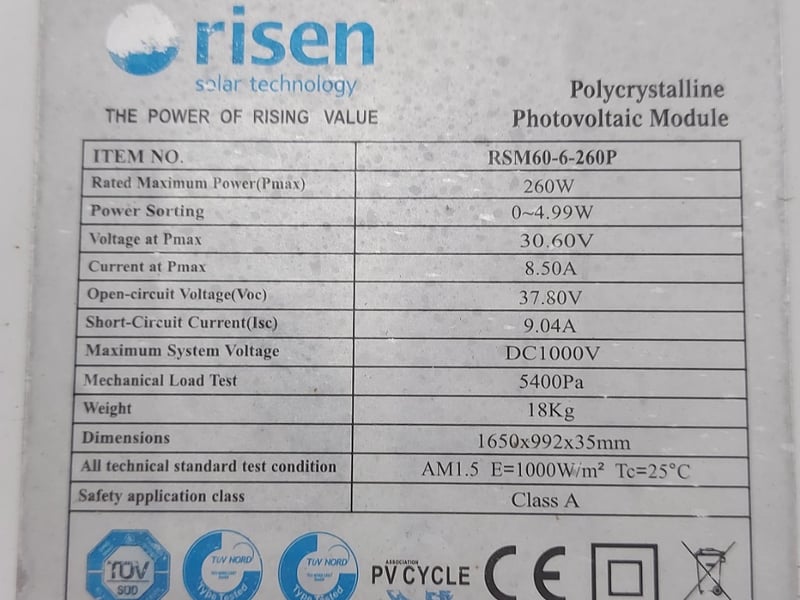Solar Panel, Risen, Polycrystalline Photovoltaic Module, 260W
