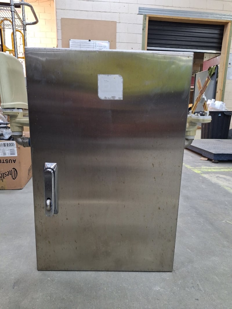 Stainless Steel, Wall Mounted Electrical Cabinet, Approximately 600mm (H) x 400mm (W) x 200mm (D)