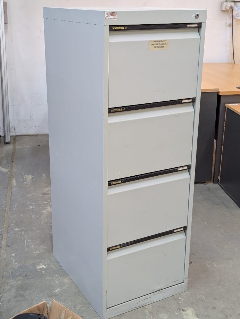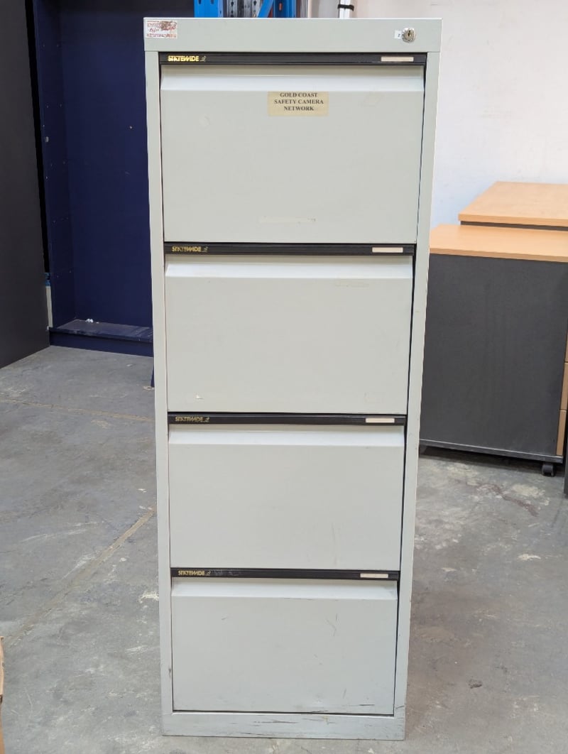 Filing cabinet, 4 drawer, no keys supplied Dimensions: H 132.5cm x W 47cm x D 61.5cm