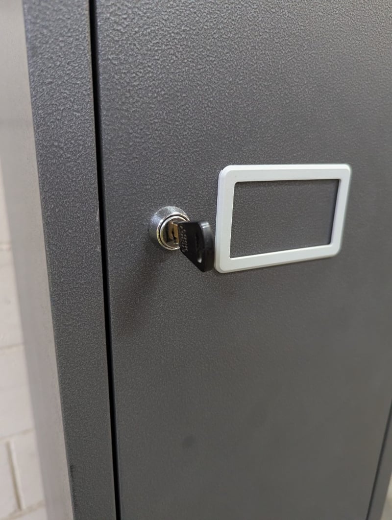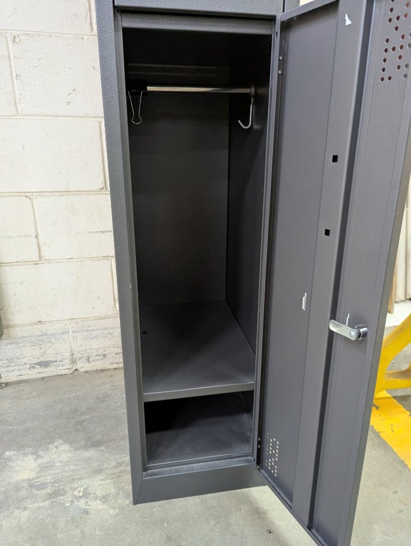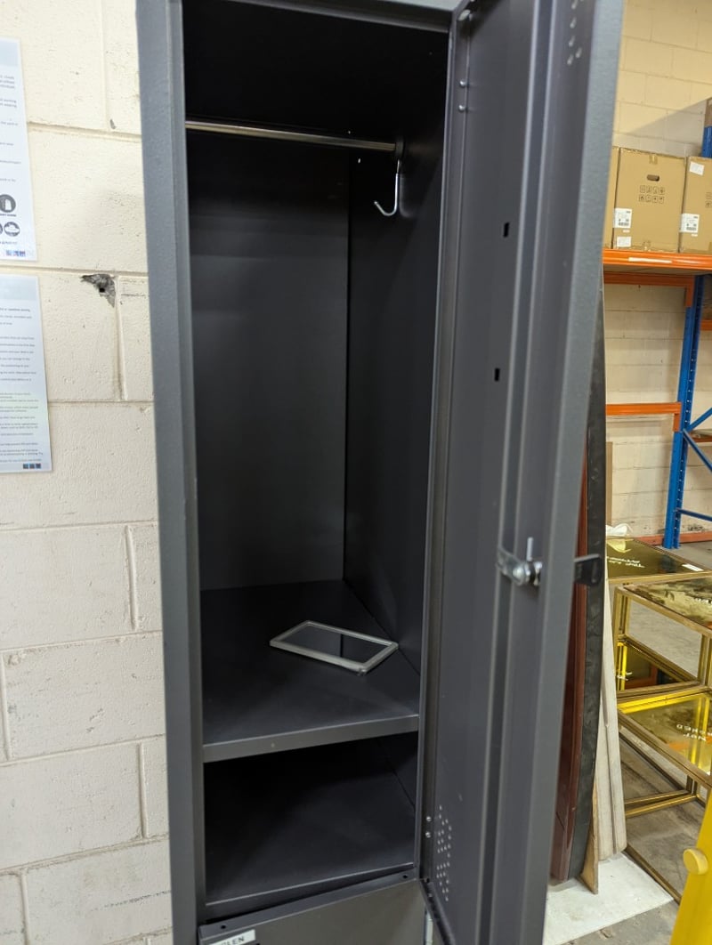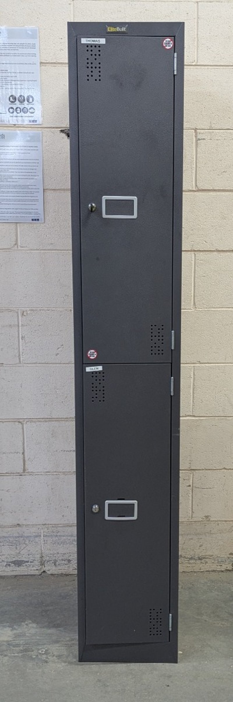Slimline Locker, dark grey finish, 2 sections, key to top section, no key to lower section