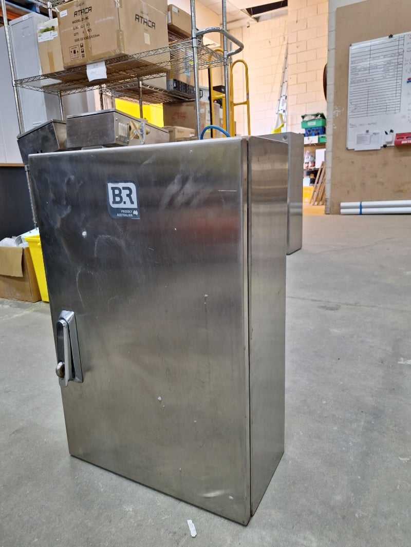 Stainless Steel, Wall Mounted Electrical Cabinet, Approximately 600mm (H) x 400mm (W) x 200mm (D)