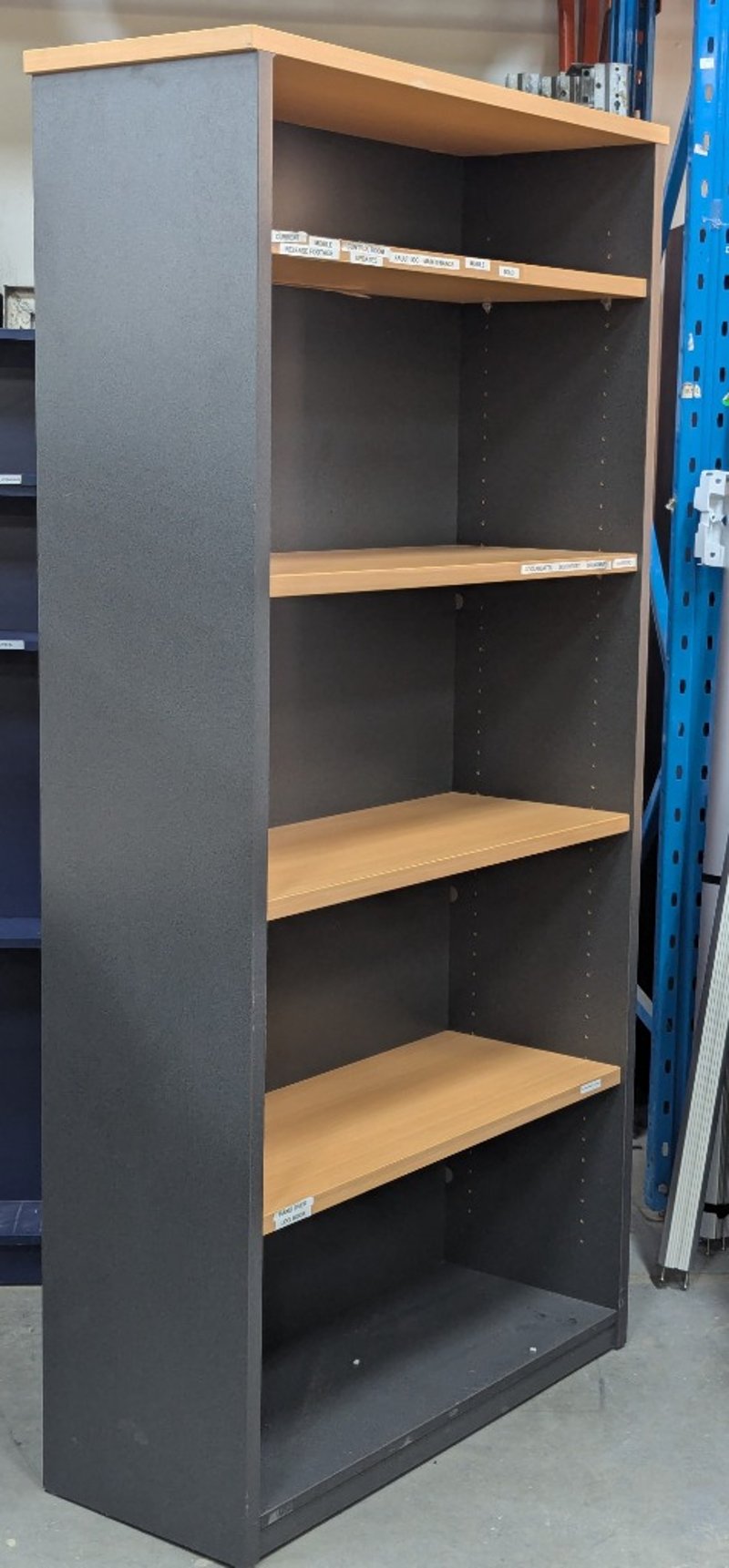 Bookshelf, 4 adjustable shelves, timber style shelves, grey finish outerDimensions: H 180.5cm x W 88cm x D 35.5cm