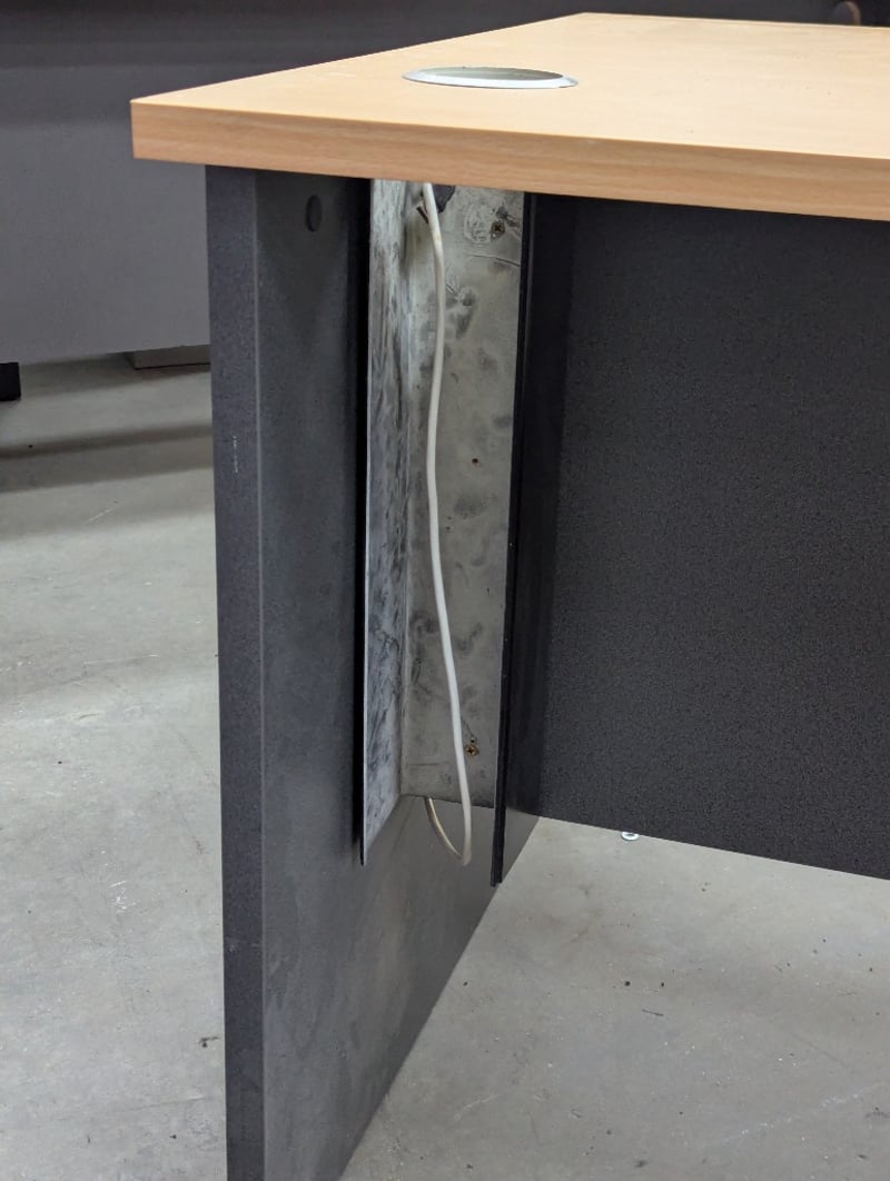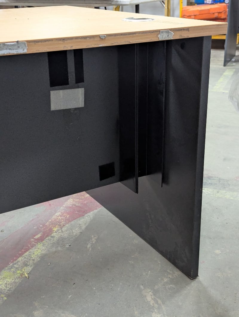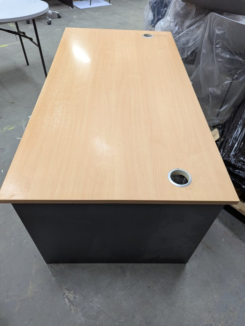 Office desk, timber style top, dark grey finish base