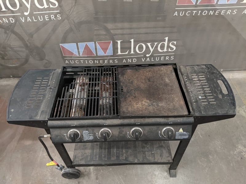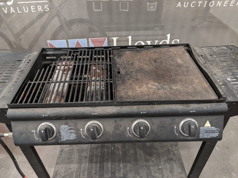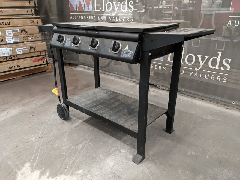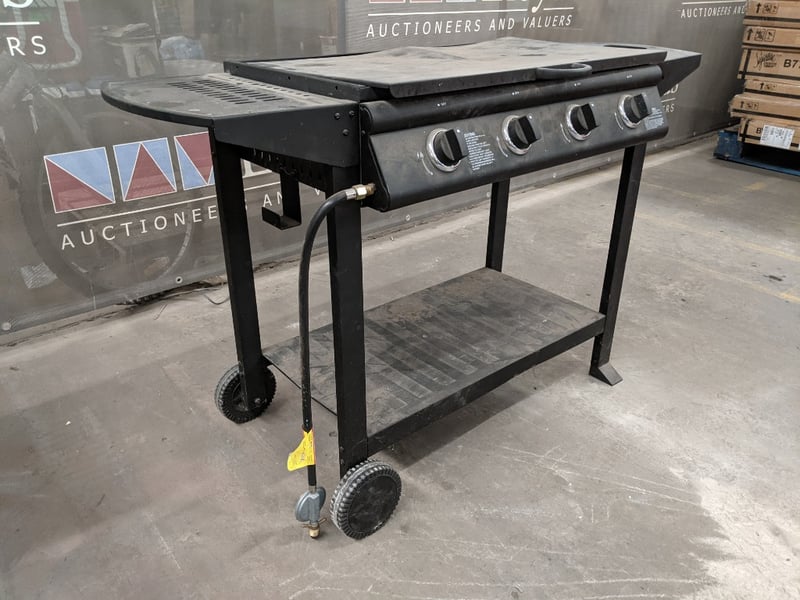 Gas BBQ Grill, x4 Adjustable Burners** for precision, Flat & Open Griddle, Metal Frame Note: Signs Of Wear & Griddle Damage, Refer To Photo