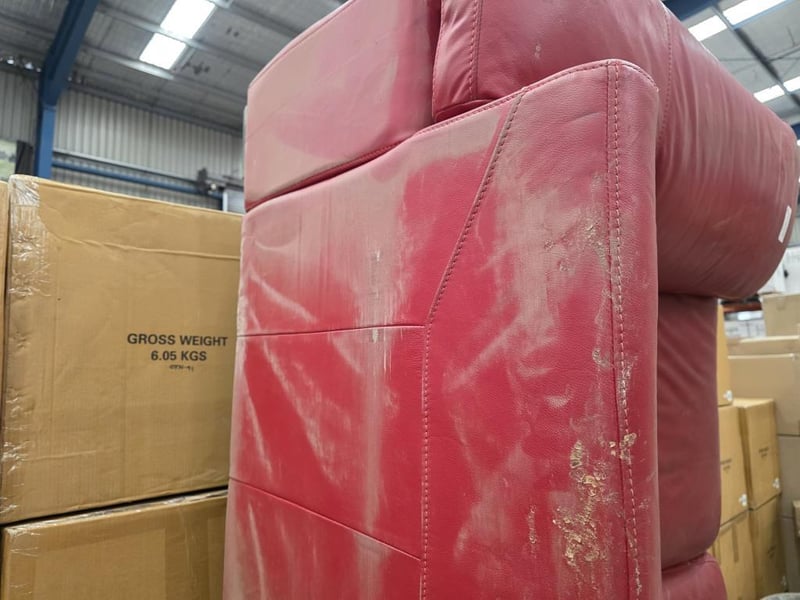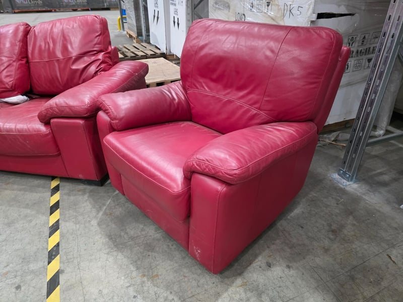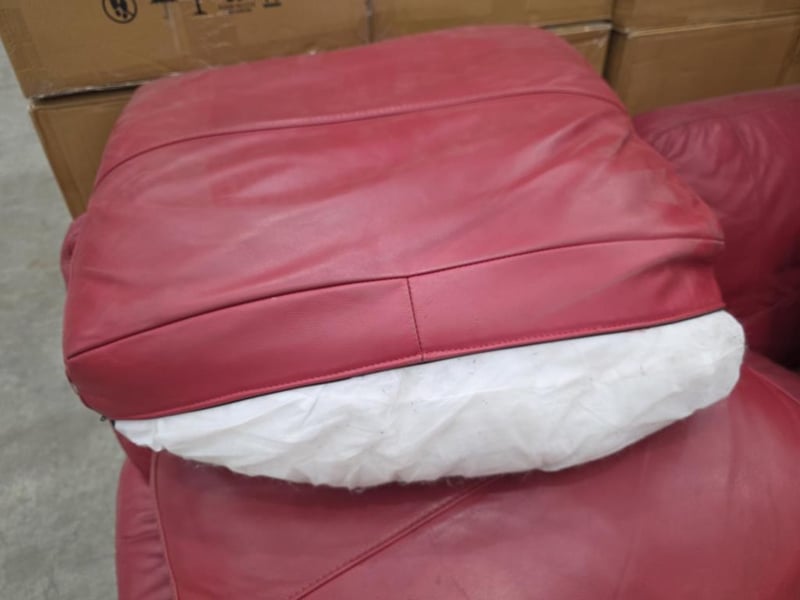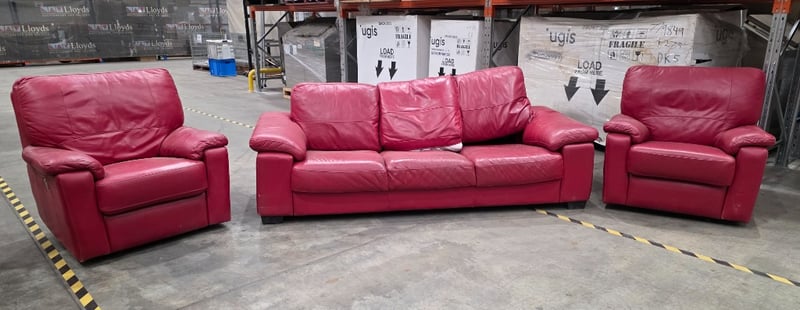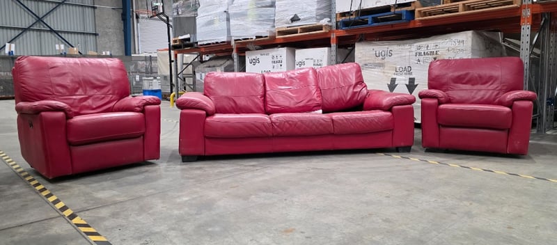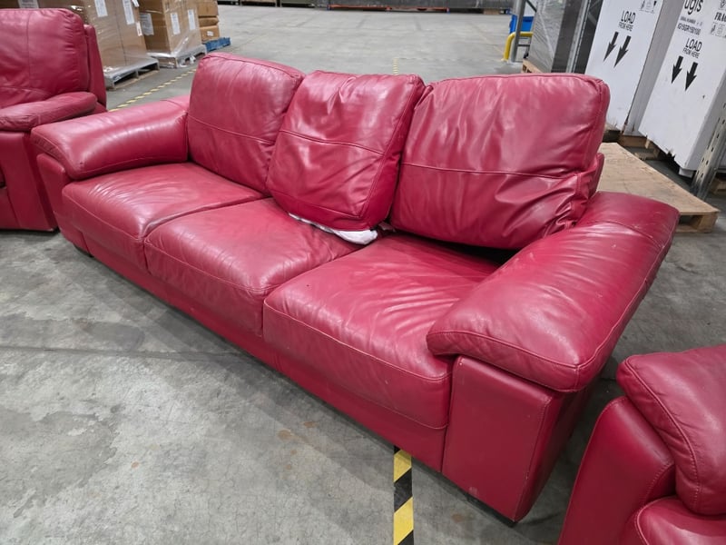 Red Leather Lounge Suite including 2 Reclining Chairs and a 3 Seater Note: Has some tears and damage on the backs. SOLD AS LOT