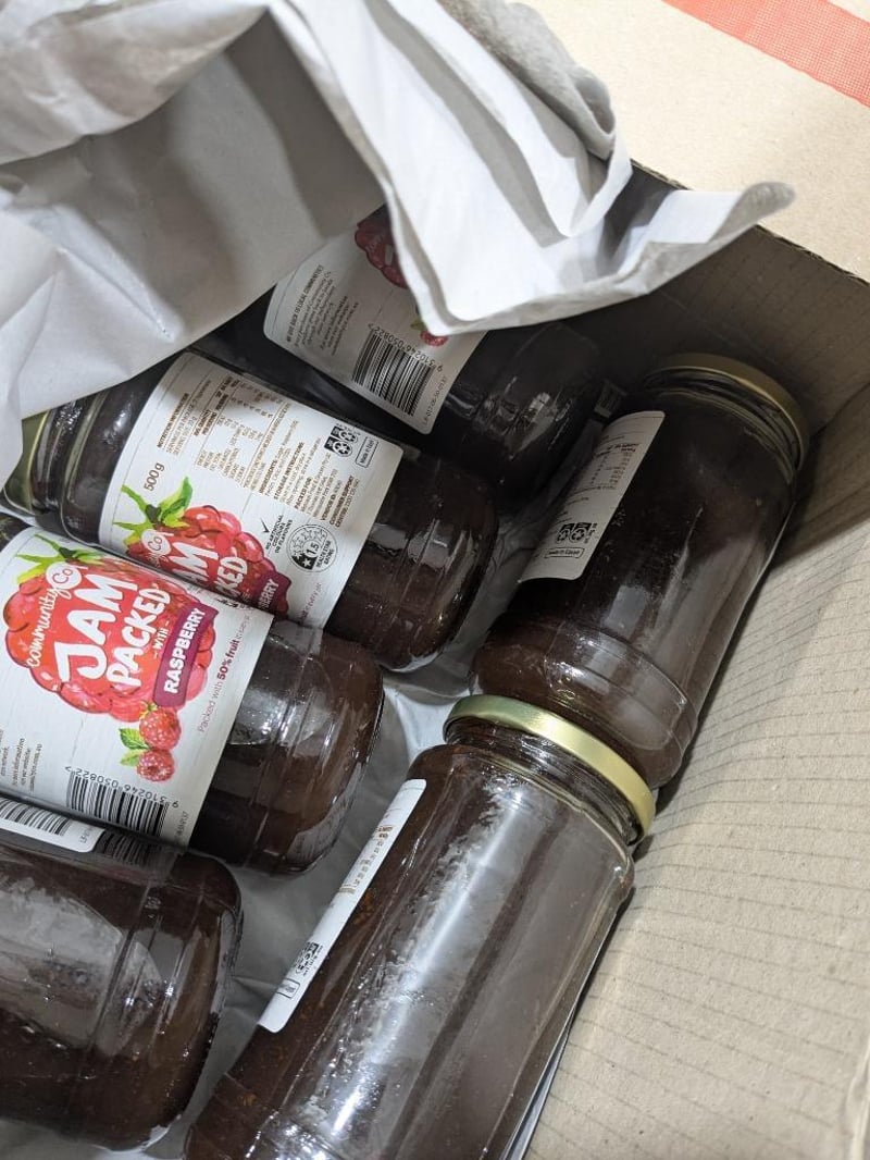 Assorted grocery items, including optimum sparkling water, raspberry jam and more...Note: No guarantees are made regarding product freshness, shelf life, or usability,- Bidders are advised to inspect and verify before.