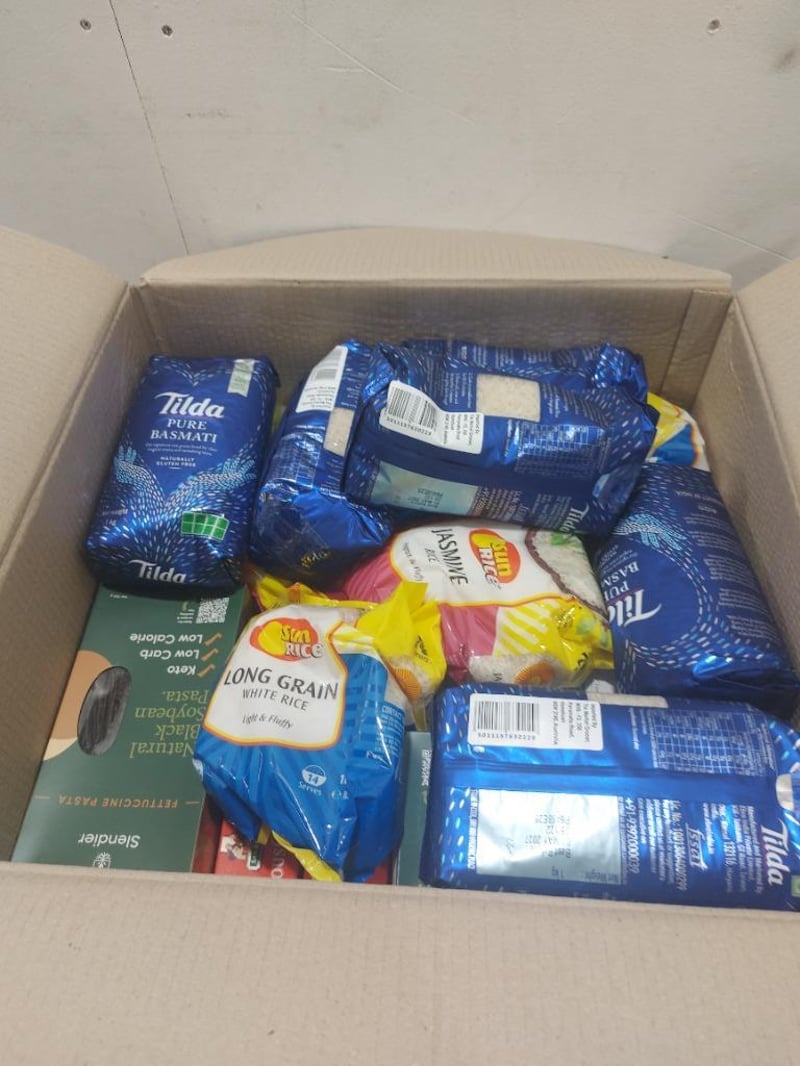 Assorted grocery items, including rice, pure basmati and more...Note: No guarantees are made regarding product freshness, shelf life, or usability,- Bidders are advised to inspect and verify before.