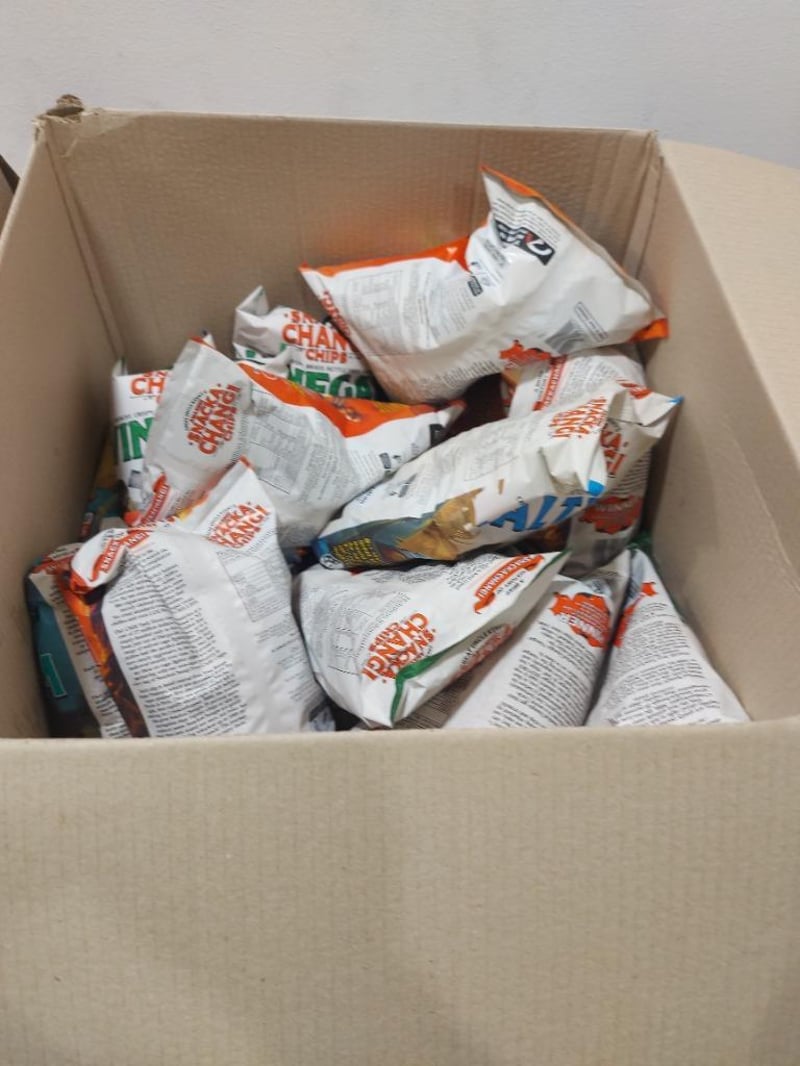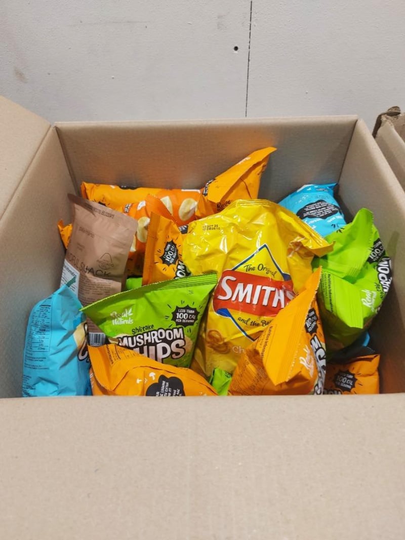 Assorted chips, including Snaka Changi chips, mushroom chips and more...Note: No guarantees are made regarding product freshness, shelf life, or usability,- Bidders are advised to inspect and verify before.