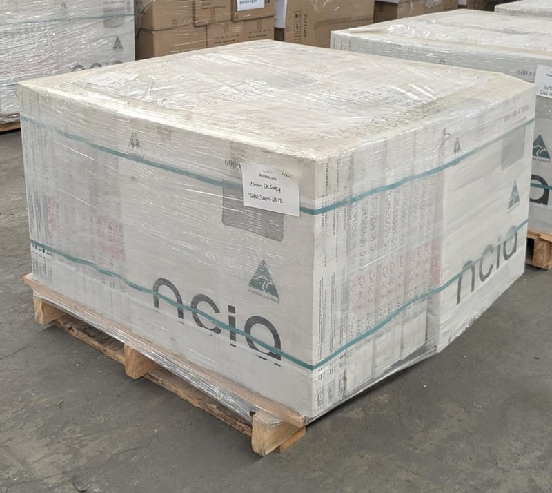 RRP $4,220 Textured Floor Tiles, Orion Dark Grey RRP $61.06 /sqm Colour: Orion Dark Grey Tile Size: 600x600mm Tiles Per Box: 4 SQM Per Box; 1.44m2 Boxes to Pallet; 48 Total SQM; 69.12sqm BID PER SQM, MUST TAKE 69sqm DISCLAIMER: All of these fantastically presented products are the subject of an Insurance claim, as such we highly recommend an inspection as items may be displaying physical damage due to transit. Note Damage Tiles and Packaging.