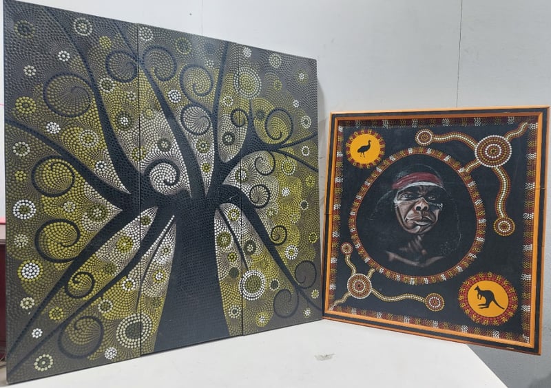 Assorted canvas wall art paintings. Dims: 91cm H, 91cm L, 4cm W Dims: 72cm H, 66cm L, 3cm W Sold as a lot.