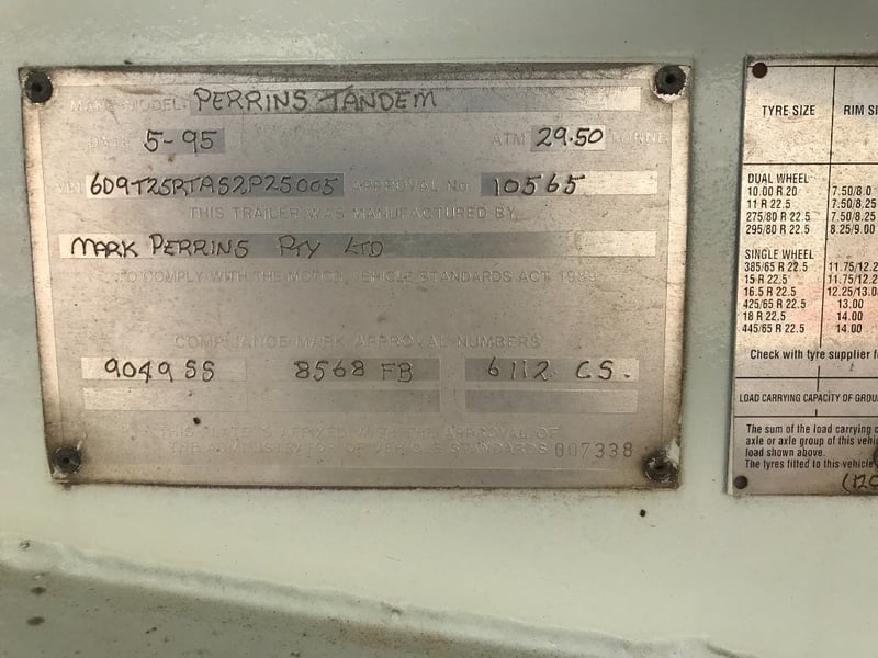 Dual Axle Spreader/Mixer Trailer DOM: 5/95 Model: Perrins Tandem Vin No: 6D9T25RTAS2P25005 ATM: 29.5T Dual Axle Make: Perrins Trailers Tyres: Good. Location: Gympie, QLD Contact: Mark David - 0437 318 344 or [email protected]