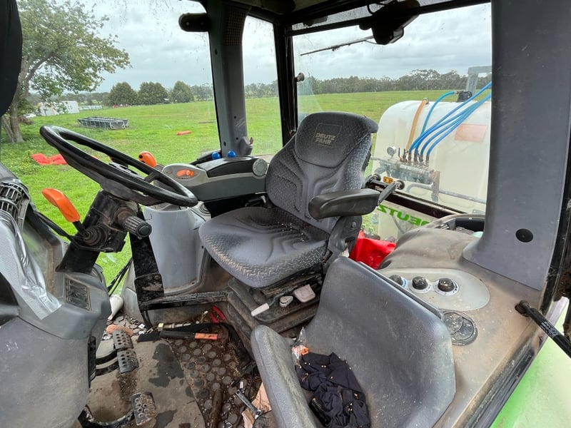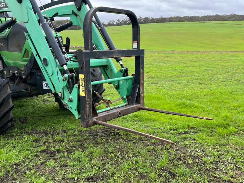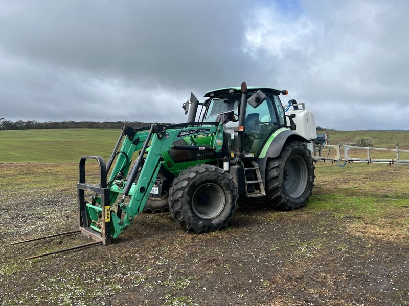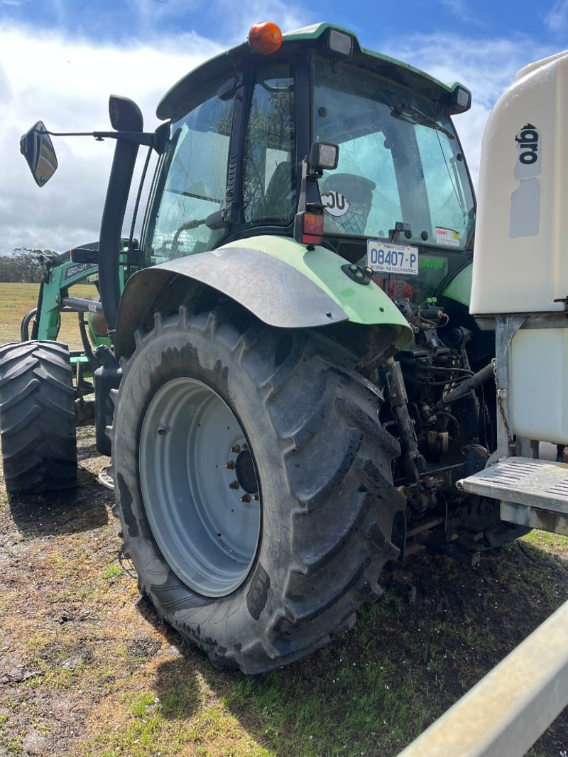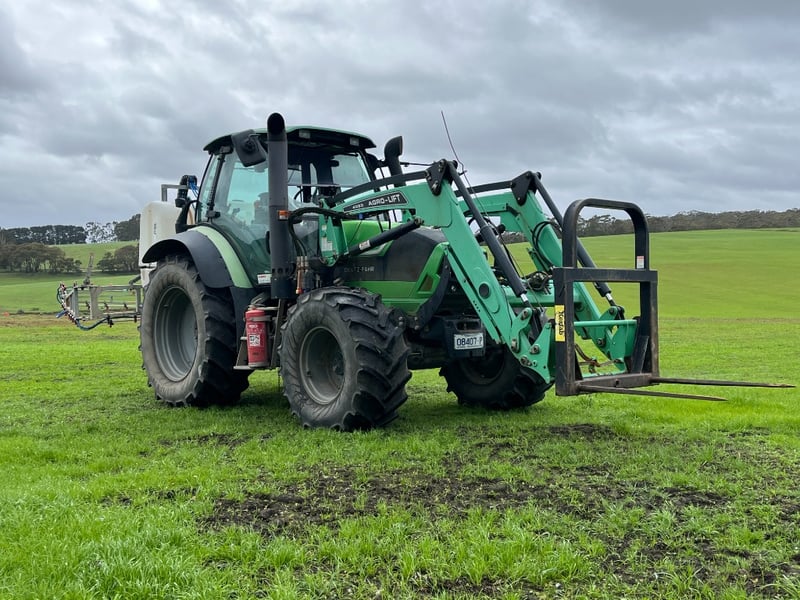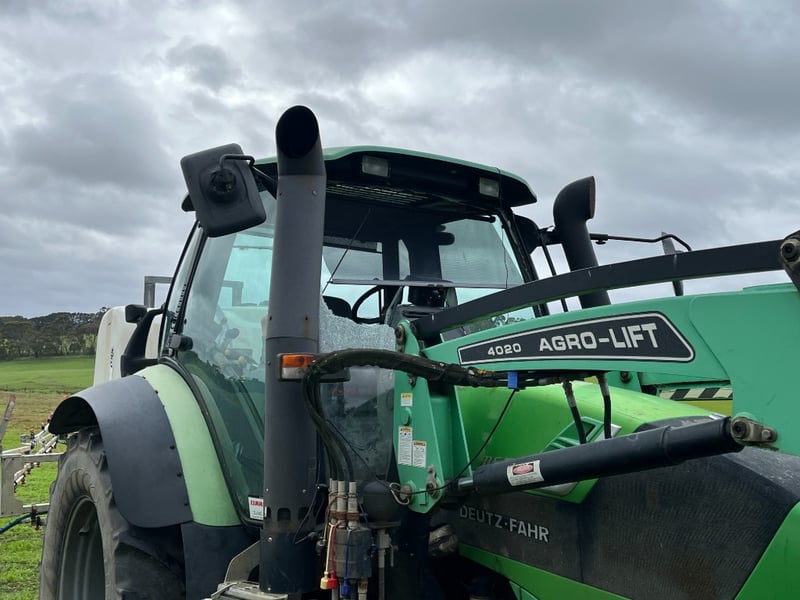 2017 Deutz-Fahr M 6.08 Tractor with Agro-Lift 4020 Front Loader & Bale Tines Year: 2017 Make: Deutz-Fahr Model: M 6.08 VIN: WSXL850200LD50301 Engine Number: 12080255 Engine: Deutz TCD 2012 L06 2V (6.05 L diesel) Rated Power: 107 HP / 79.8 kW Hours Indicated: 4,207 hrs Colour: Green Description: fitted with a front-end loader attachment (Agro-Lift 4020) and bale tines, presenting in working condition and reported to start and run at consignment. Noted damage includes a smashed cab window.