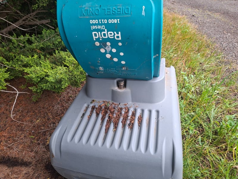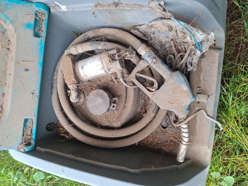Rapid Diesel 200L Portable Diesel Tank with Pump Make: Rapid Spray Model: Rapid Diesel 200L Type: Portable Poly Diesel Transfer Tank Capacity: 200 Litres (Diesel Only) Features: Integrated 12V electric pump Dispensing hose and nozzle Lockable hinged lid Heavy-duty moulded polyethylene construction Condition: In good used condition, showing some surface dirt and wear consistent with outdoor use. Unit appears complete with pump, hose, and nozzle setup — ideal for farm, machinery, or on-site refuelling.
