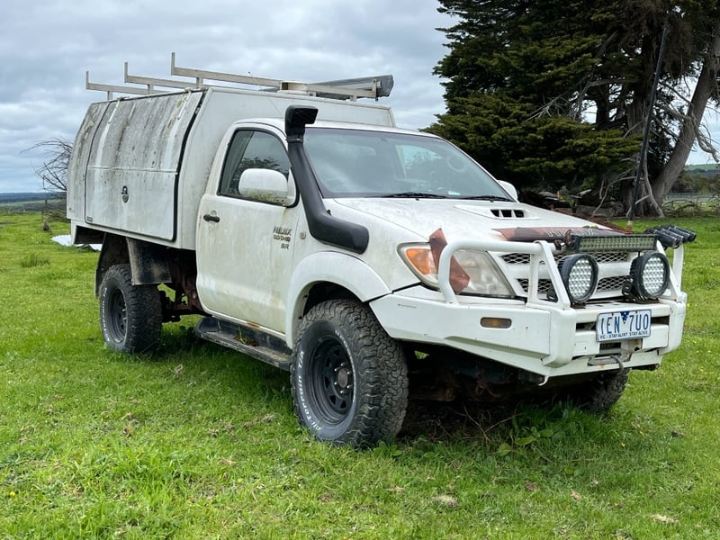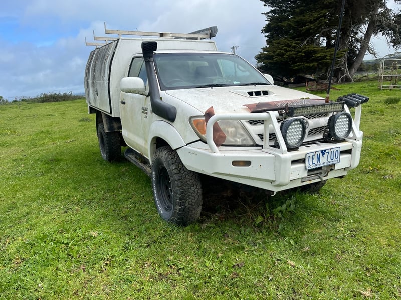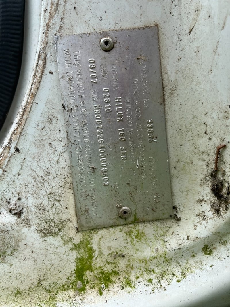 2007 Toyota Hilux KUN26R SR Year: 2007 Make: Toyota Model: Hilux Series: KUN26R Badge: SR Body: Single Cab Chassis Drive Type: All wheel drive Engine: 3.0 Diesel Transmission: Manual Seats: 3 Description/extras: non running, poor condition, sold as is where is VIN: MR0DZ22G400008603 ENG No: 1KD7362995 (as per PPSR) NOTE: INSPECTIONS WELCOMED, BUYER TO PROVIDE LIFTING EQUIPMENT FOR COLLECTION