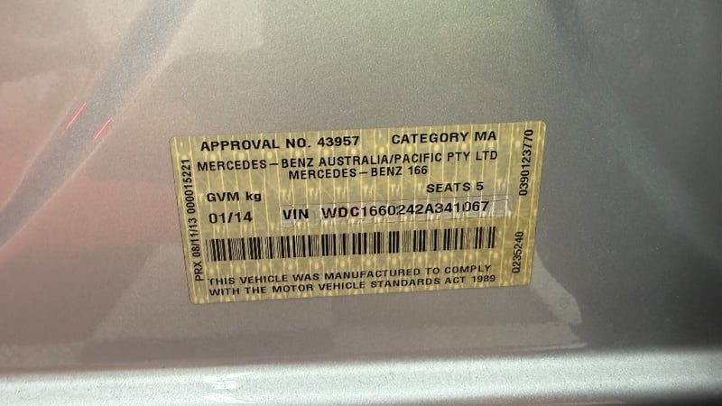 2014 Mercedes-Benz ML350 W166 BlueTEC Year: 2014 Make: Mercedes-Benz Model: ML350 Series: W166 Badge: ML350 BlueTEC Body: 5-Door SUV Drive Type: All wheel drive Odometer: Indicating 154,985 Kilometres Engine: 3.0 V6 Turbo Diesel Transmission: Automatic Colour: Grey Seats: 5 Description/extras: Air Conditioning, Power windows, SRS, Sat Nav, Digital dash, Tinted windows, Cruise control, Leather interior, Climate control, Alloy wheels, AUX / USB, Central locking. brakes need attention, not working correctly. Price Guide - $10,700-$13,300 (Based on Unmodified Vehicle) VIN: WDC1660242A341067 ENG No: 64282641514292 AS PER PPSR #PCV (Key #B37 Carrara) Lloyd's stock #1038815+1