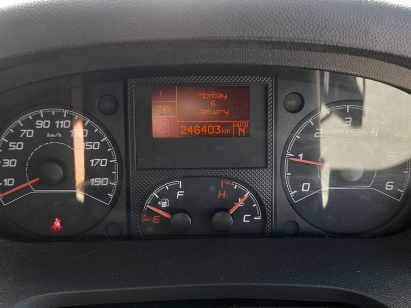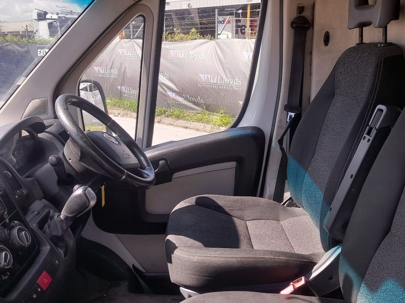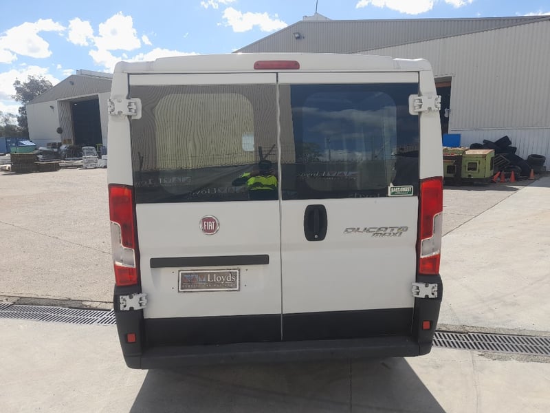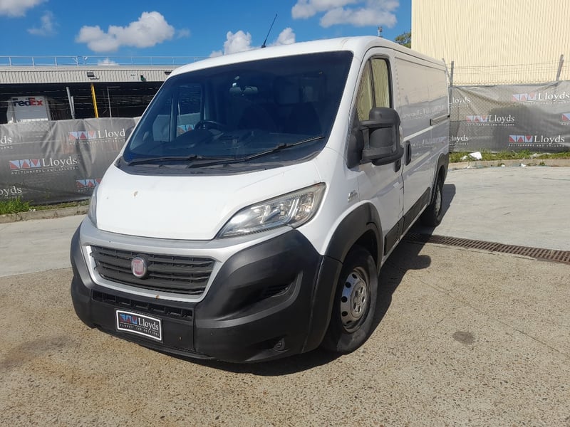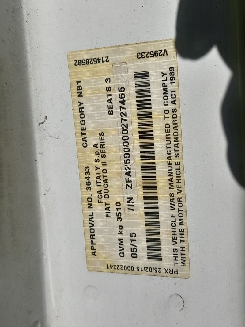 2015 Fiat Ducato SERIES 2 Maxi Year: 2015 Make: Fiat Model: Ducato Series: SERIES 2 Badge: Maxi Body: 4-Door Van Drive Type: Front wheel drive Odometer: Indicating 246,404 Kilometers Engine: 2.2 Diesel Transmission: 9-Speed Automatic Colour: White Seats: 3 Description/extras: Air Conditioning, Power windows, SRS, Tinted windows, Central locking, CD player, Log books/Owners manual. 2015 Fiat Ducato 130 Multijet panel van featuring a 2.3-litre turbocharged diesel engine with 246,403 km on the odometer. This practical work vehicle is finished in white with charcoal trim and includes a spacious cargo area with roller shelving and storage provisions. The van is equipped with a 9 speed automatic transmission and rear-wheel drive configuration. The cabin features fabric upholstery with turquoise and grey tones, an AM/FM radio system cd player, climate controls, and basic instrumentation. The vehicle presents well for commercial use with functional mechanics and adequate load-carrying capacity. Minor wear to door handles, scuffs to lower cargo area panels, general operational wear consistent with high-mileage commercial use. Inspection recommended. Price Guide - 9.3k-11.8k (Based on Unmodified Vehicle) VIN: ZFA25000002727465 ENG No: 2157450 #PCV (Key #E27) Lloyds stock #585273+1