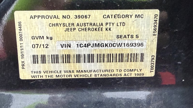 2012 Jeep Cherokee KK LimitedYear: 2012Make: JeepModel: CherokeeSeries: KKBadge: Limited Body: 5-Door WagonDrive Type: All wheel driveOdometer: Indicating 219,547 KilometersEngine: 3.7 V6 PetrolTransmission: AutomaticColour: BlackSeats: 5Description/extras: Air Conditioning, Power windows, SRS, Central locking. Interior leather on upholstery needs attention, tearing and ripping, paint defects, scratches and fade please inspect. VIN: 1C4PJMGK0CW169396ENG No: CW169396#PCV(Key #B19 carrara)Lloyds stock #583896+1