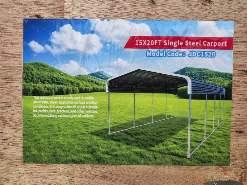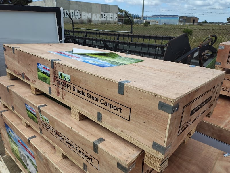 FACTORY DIRECT ** Unused 2025 ABOSS, 15FT x 20FT METAL CARPORTABOSS, JDC1520, 15FT x 20FT METAL CARPORT1.With 0.32mm color boards2.With 50x50x1.5mm steel pipe, 45*45x1.2mmsteel pipe frame3.Plug-in connection method4.Product Outer Size4730mmx6000mmx3050mmPack Size Approx: Wooden box: 2200mmx1000mmx420mmWeight Approx: 330 KgContact: King Cheung - 0477 987 576 or [email protected] Note: OEM images and VIDEOS shown are for illustration purposes only, and used as a guide only, inspections highly recommended. Please note: minor scuffs and marks may be evident