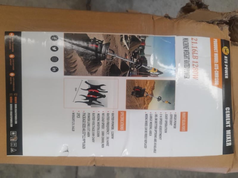 FACTORY DIRECT ** Unused 2025 ATSPower, CEMENT MIXER, ATS-CMR1280 -Damaged BoxRatedpower: 1280WRated frequency: 50/60HZNo load speed: 1000-2000r'minMixing width:320mmRated voltage:100-240VWeight Approx: 10 kgContact: King Cheung - 0477 987 576 or [email protected] *** PLEASE NOTE Collections must occur within 7 days of Auction Ending***Please note: minor scuffs and marks may be evidentNote: OEM images and VIDEOS shown are for illustration purposes only, and used as a guide only, inspections highly recommended.