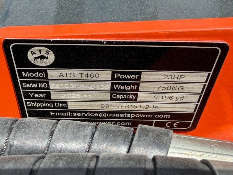FACTORY DIRECT ** Unused 2025 ATS POWER T460 Mini Skid Steer Loader, ATS-T460Unused 2025 Mini Skid Steer LoaderLifting Capacity: 840 lbsEngine Capacity: 23 HpEngine Displacement: 739Cylinders: 2 Motor Speed: 3600 RpmMax Torque: 2500 RpmCooling Method: Air-cooledFuel Tank Capacity: 18.2 Lbs.Drive System: Hydraulic Four-wheel DriveTravel Speed: 5.5 Km/hStandard Lifting Capacity: 662 Lbs.Hydraulic Drive System : 180 BarHydraulic Oil Tank Capacity: 22.7 QtTires:18*8.5-8Electrical System :12 VBattery Capacity: 36 AhBraking System: Hydraulic Closed BrakeMeasurement Approx: 1950*1010*1300Weight Approx: 907 kgVIN/Serial No: 2510303A0135ZWO202511006-15Contact: King Cheung - 0477 987 576 or [email protected]Please note: minor scuffs and marks may be evidentNote: OEM images and VIDEOS shown are for illustration purposes only, and used as a guide only, inspections highly recommended.