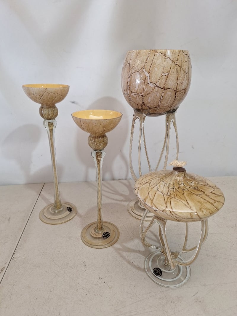 Jozefina Krosno Art Glass Items Featuring A Distinctive Marbleized Octopus Design