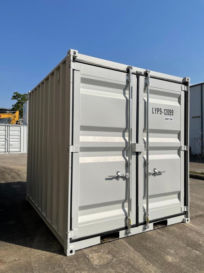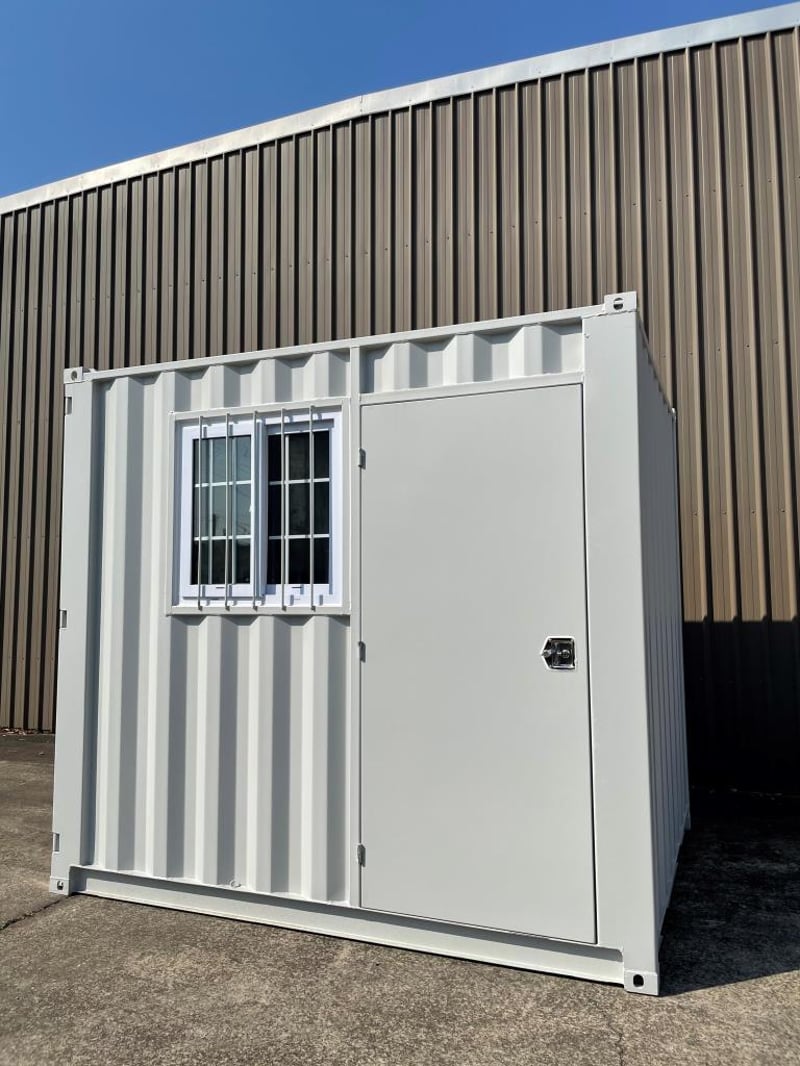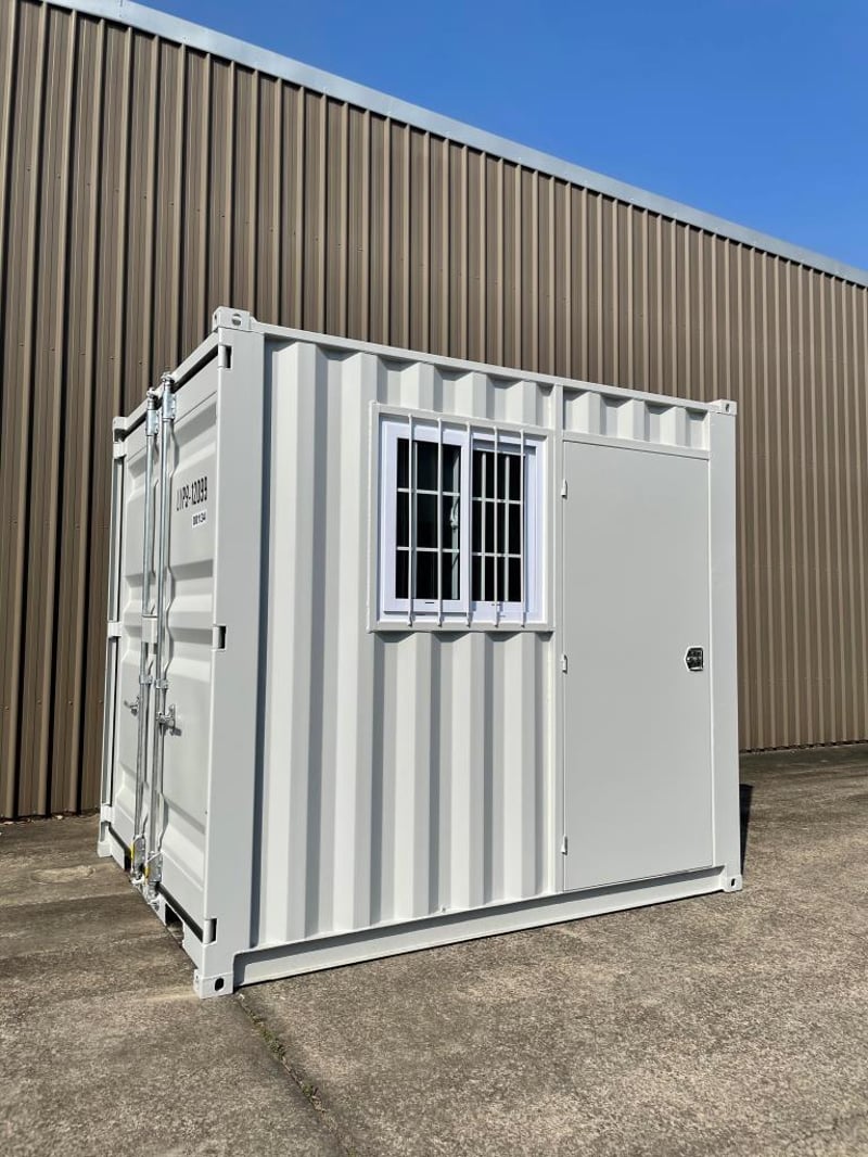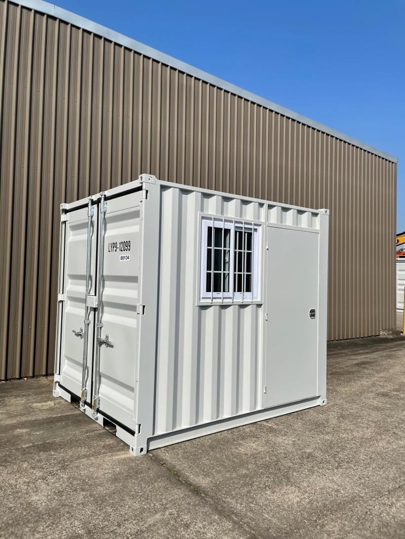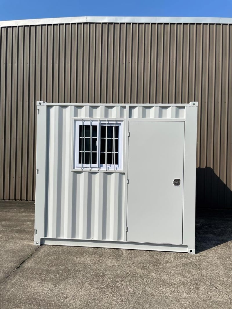 9FT STORAGE CONTAINER FEATURES: - One Lockable Front Opening Entry Door - One End Opening Door - Forklift Pockets - Timber Floors - Sliding Window with Metal Security Grill External Dimensions: 2735mm Long, 2190mm Wide, 2255mm High RSE CODE: 0003