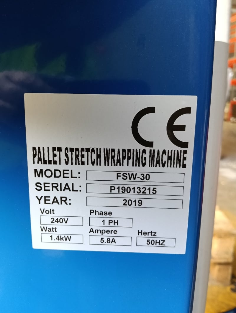 Pallet Stretch Wrapping Machine, Fromm FSW-30, 1500mm dia. turntable, 2200mm max. wrapping height, DOM: 2019, S/N: P19013215